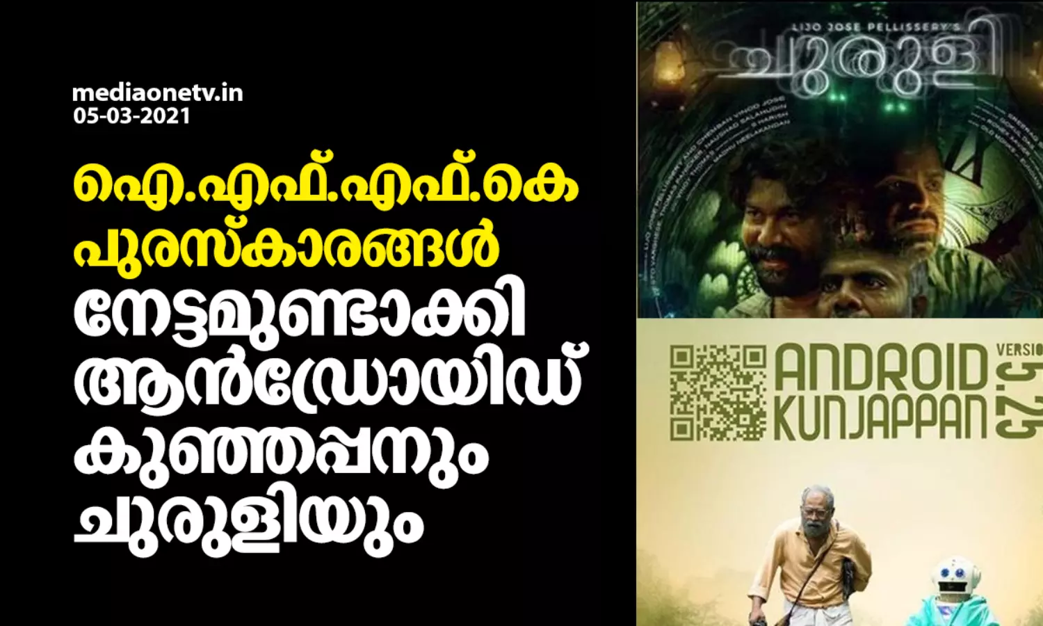 ഐ.എഫ്.എഫ്.കെ പുരസ്കാരങ്ങള്; മലയാളത്തില് നിന്ന് ആന്ഡ്രോയിഡ് കുഞ്ഞപ്പനും ചുരുളിക്കും നേട്ടം