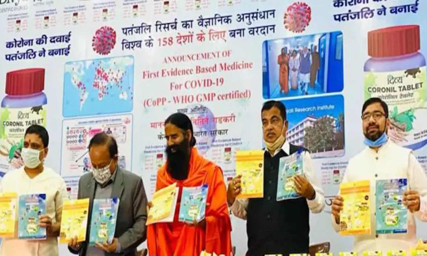കഴിഞ്ഞ വെള്ളിയാഴ്ചയാണ് ബാബ രാംദേവ് കേന്ദ്രമന്ത്രിമാരായ ഹര്ഷവര്ധന്റെയും നിതിന് ഗഡ്കരിയുടെയും നേതൃത്വത്തില് കൊറോനില് ടാബ്ലറ്റ് പുറത്തിറക്കിയത്.