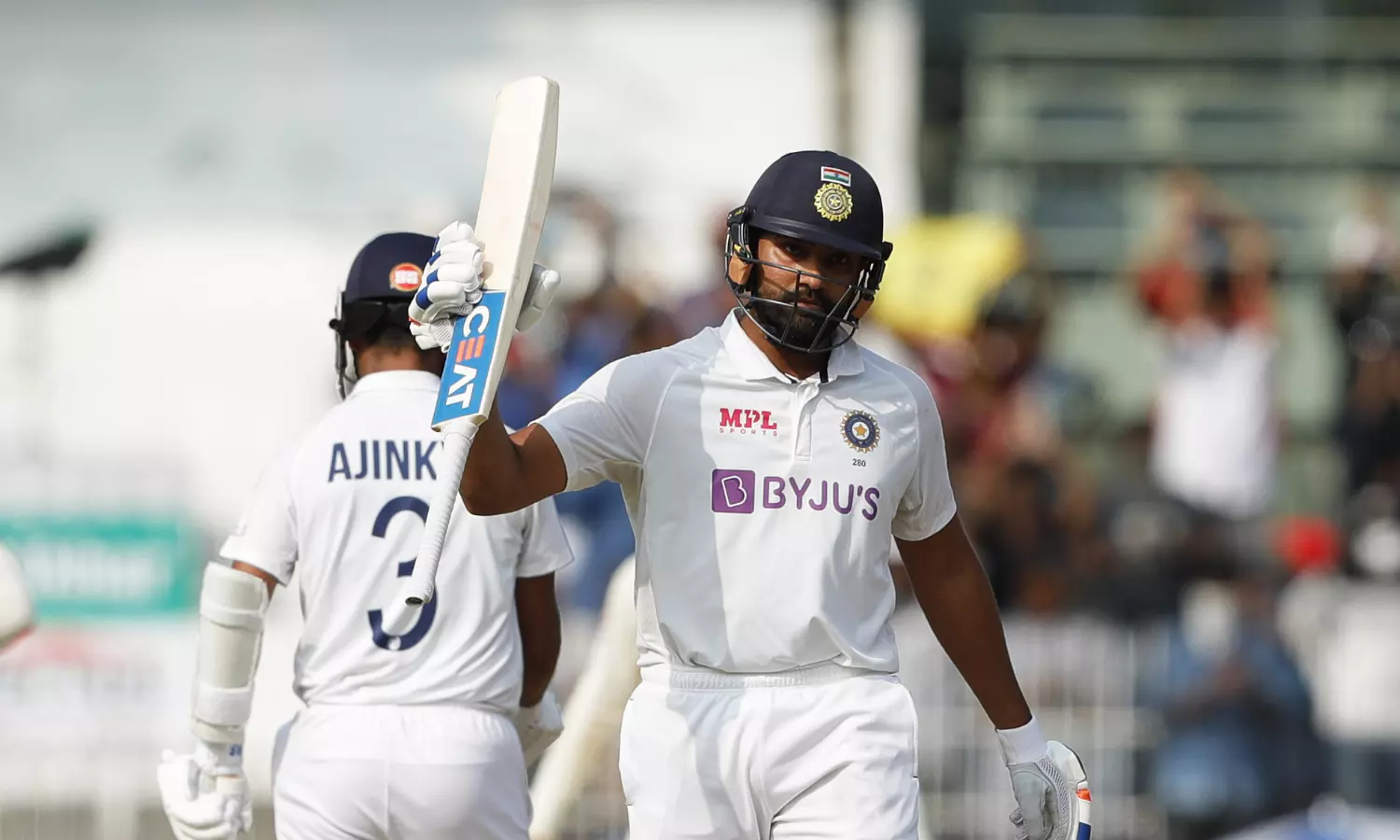 നേരത്തെ സ്കോർ ബോർഡ് തുറക്കും മുമ്പെ ഓപണർ ശുഭ്മാൻ ഗില്ലിനെ നഷ്ടപ്പെട്ട് പതർച്ചയോടെയാണ് ഇന്ത്യ തുടങ്ങിയത്. ഒല്ലി സ്റ്റോൺ ഗില്ലിനെ വിക്കറ്റിന് മുമ്പിൽ കുടുക്കുകയായിരുന്നു. ടെസ്റ്റ് സ്പെഷ്യലിസ്റ്റ് ബാറ്റ്സ്മാൻ ചേതേശ്വർ പുജരായ്ക്കും നിലയുറപ്പിക്കാനായില്ല. 58 പന്തിൽ നിന്ന് രണ്ട് ബൗണ്ടറികളോടെ 21 റൺസെടുത്ത പുജാരയെ ജാക്ക് ലീച്ച് സ്റ്റോക്സിന്റെ കൈകളിലെത്തിച്ചു. പിന്നീട് വന്ന കോഹ്ലിയാകട്ടെ അക്കൌണ്ട് തുറക്കുന്നതിന് മുന്നേ തന്നെ മടങ്ങി. തുടര്ന്ന് ഒരുമിച്ച രോഹിത്-രഹാനെ സഖ്യമാണ് ഇന്ത്യയെ മുന്നോട്ടു നയിച്ചത്. 162 റണ്സിന്റെ പാര്ട്ണര്ഷിപ്പാണ് ഇരുവരും ചേര്ന്ന് പടുത്തുയര്ത്തിയത്.