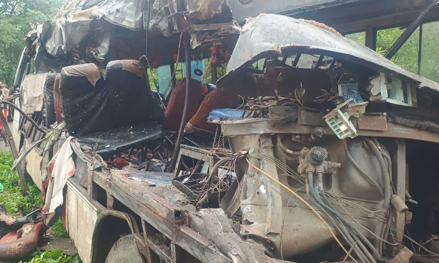 മോഹൻപൂർ പൊലീസ് സ്റ്റേഷൻ പരിധിയിലെ ജമുനിയ വനത്തിന് സമീപമാണ് അപകടമുണ്ടായതെന്ന് പിടിഐ റിപ്പോർട്ട് ചെയ്യുന്നു. 32 സീറ്റുള്ള ബസാണ് അപകടത്തില്‍ പെട്ടതെന്ന് അധികൃതര്‍ പറയുന്നു. ഡ്രൈവര്‍ ഉറങ്ങിപ്പോയതാകാം അപകടത്തിന് കാരണമെന്നാണ് പ്രാഥമിക നിഗമനം.