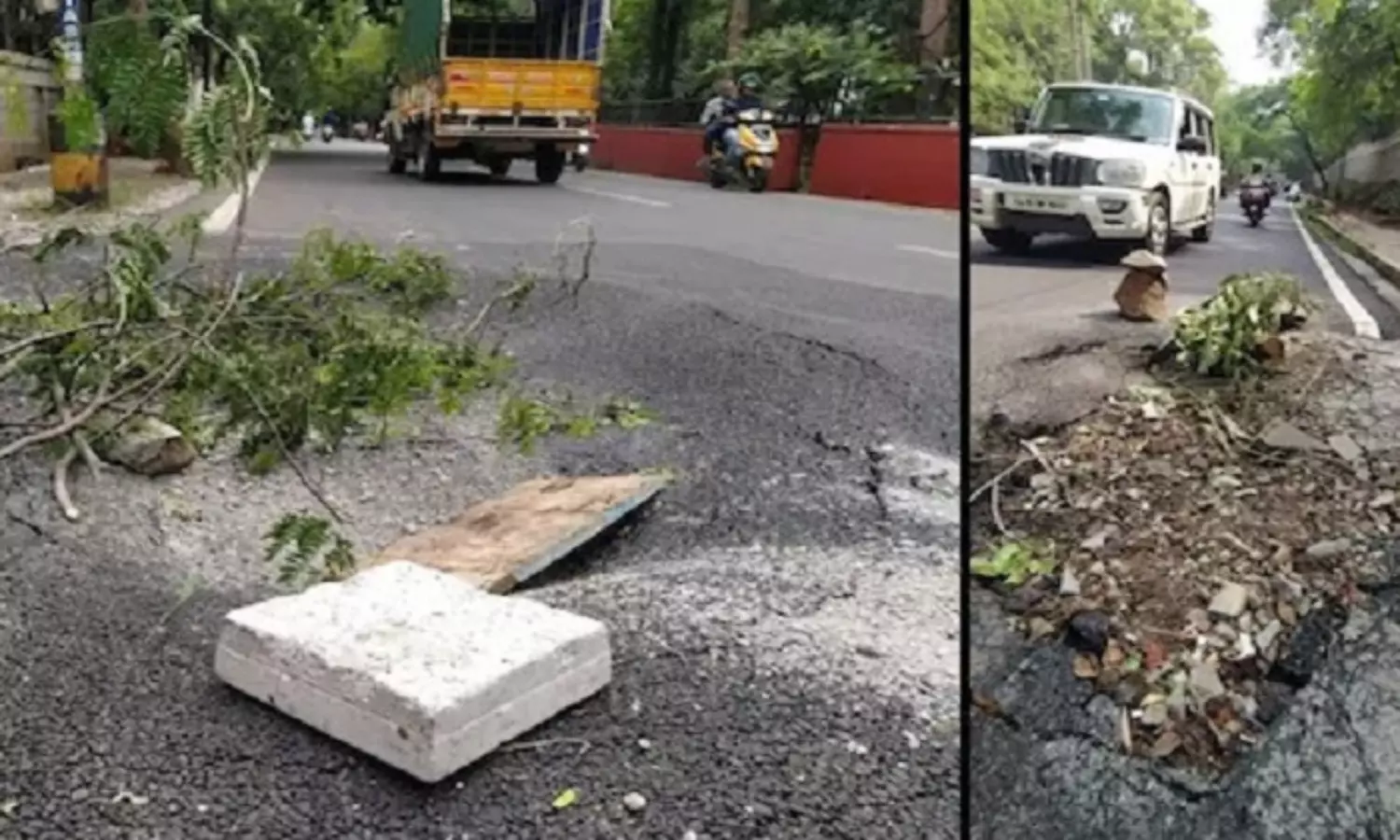 ഇതിൽ ബേസ് യൂനിവേഴ്സിറ്റി കാംപസിന്റെ ഭാഗത്തെ റോഡാണ് പൊളിഞ്ഞിരിക്കുന്നത്. കഴിഞ്ഞ ദിവസം രാത്രിയുണ്ടായ ശക്തമായ മഴയിലാണ് റോഡ് തകർന്നത്. ടാറ് ഇളകുകയും കുഴിയാകുകയും ചെയ്തതിനെ തുടർന്ന് ഇരുചക്ര വാഹനങ്ങൾ അപകടത്തിൽപെടാതിരിക്കാൻ ഇവിടെ നാട്ടുകാർ കല്ലും പൊടിയും കൊണ്ടിട്ടിരിക്കുകയാണെന്നാണ് നാട്ടുകാർ പറയുന്നത്. നേരത്തെ മോദിയുടെ സന്ദർശനം നിശ്ചയിച്ചിരുന്ന ഏപ്രിലിലും ഇവിടെ ടാറിങ് പ്രവൃത്തി നടന്നിരുന്നെന്നും നാട്ടുകാർ സൂചിപ്പിക്കുന്നു. സന്ദർശനം പിന്നീട് മാറ്റിവയ്ക്കുകയായിരുന്നു.