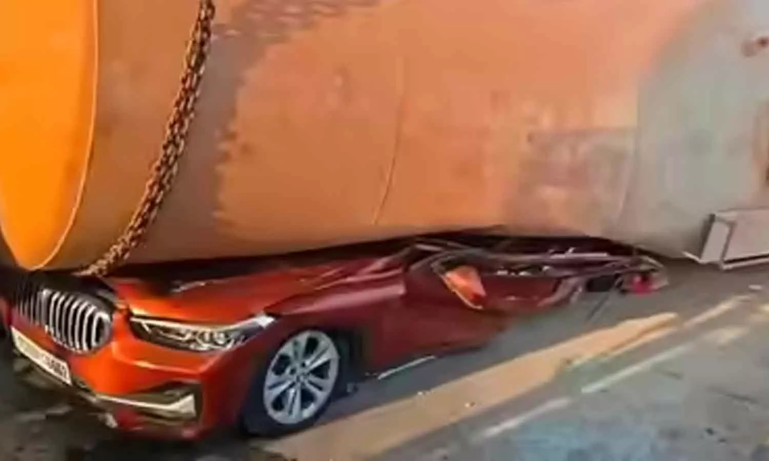 ടോൾ പ്ലാസക്ക് സമീപത്ത് വെച്ച് നിയന്ത്രണം നഷ്ടപ്പെട്ട ടാങ്കർ സമീപത്ത് കൂടി പോവുകയായിരുന്ന ബിഎംഡബ്ല്യു കാറിന് മുകളിലേക്ക് മറിയുകയായിരുന്നു