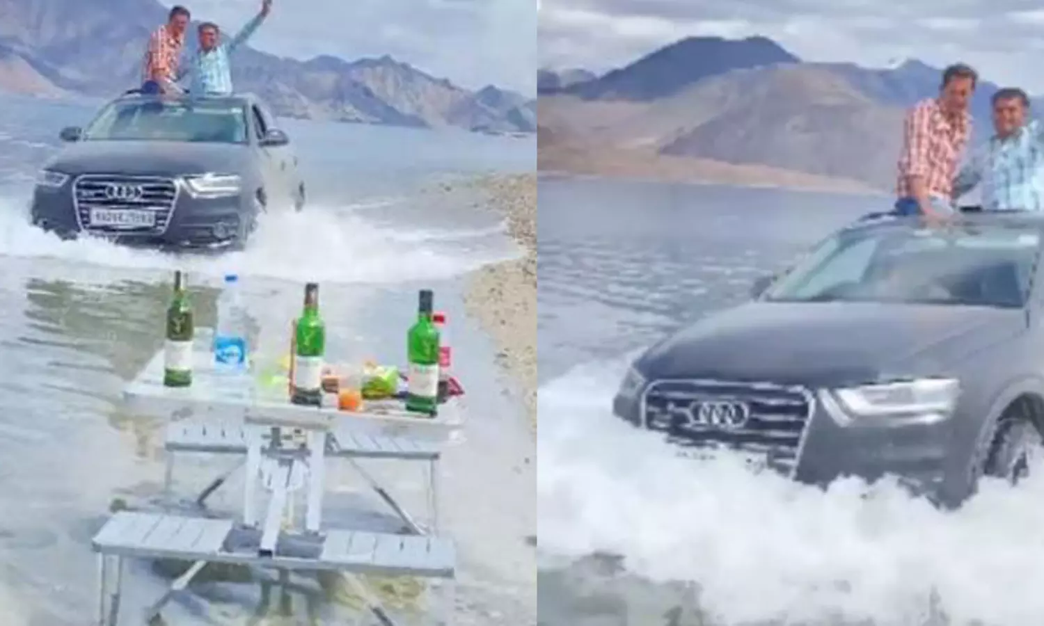 മൂന്ന് വിനോദസഞ്ചാരികൾ തങ്ങളുടെ എസ്.യു.വി കാർ പാംഗോങ് തടാകത്തിലൂടെ ഓടിച്ചുകയറ്റുന്ന വീഡിയോ ആണ് ഇപ്പോൾ സോഷ്യൽ മീഡിയയിൽ പ്രചരിക്കുന്നത്. ജിഗ്മത് ലഡാക്കി എന്ന വ്യക്തിയാണ് ലഡാക്കിലെ പാംഗോങ് തടാകത്തിലൂടെ വിനോദസഞ്ചാരികൾ കാർ ഓടിക്കുന്ന വീഡിയോ ട്വിറ്ററിൽ പങ്കുവെച്ചത്.