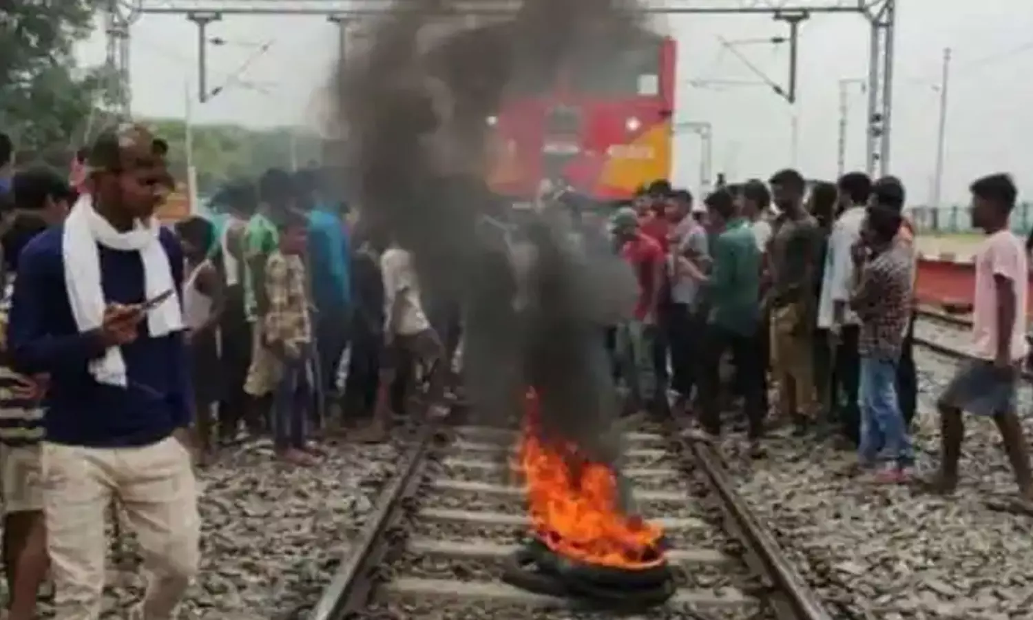 പത്തിലേറെ ട്രെയിൻ ബോഗികൾക്ക് തീവെച്ച പ്രതിഷേധക്കാർ ആര ജംഗ്ഷൻ സ്റ്റേഷനും കല്ലെറിഞ്ഞ് തകർത്തു