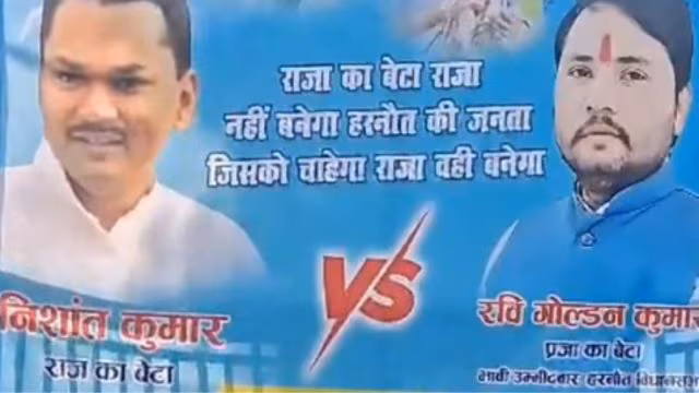 പോസ്റ്ററിൽ കോൺഗ്രസ് നേതാവ് രവി ഗോൾഡൻ കുമാർ ഹർനൗട്ടിലെ സ്ഥാനാര്ഥിയായി സ്വയം പ്രഖ്യാപിച്ചിട്ടുണ്ട്