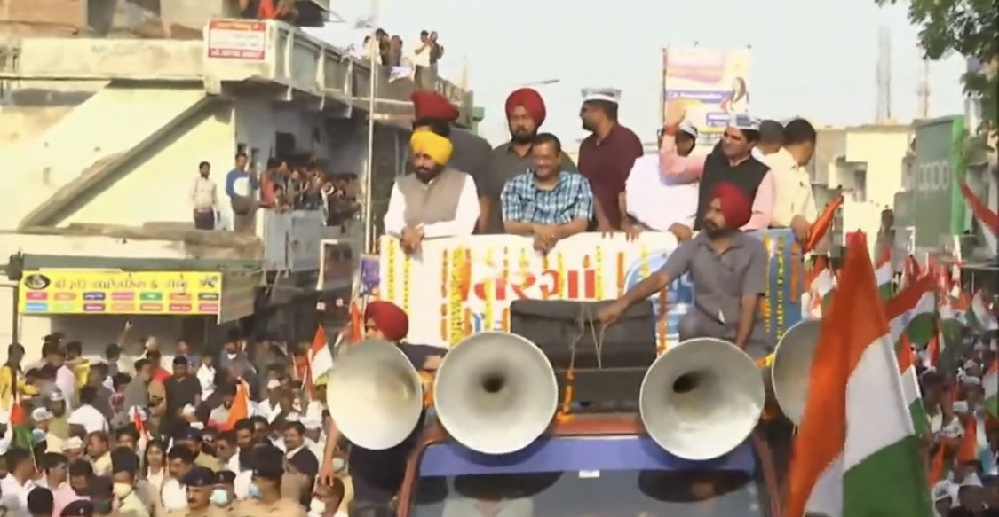 ഗുജറാത്തിൽ 'പഞ്ചാബ് ഇഫക്ട്' സൃഷ്ടിക്കാൻ ആം ആദ്മി പാർട്ടി; ഭഗവന്ത് മന്നിനെ കൂട്ടി കെജ്രിവാളിന്റെ മെഗാ റോഡ് ഷോ