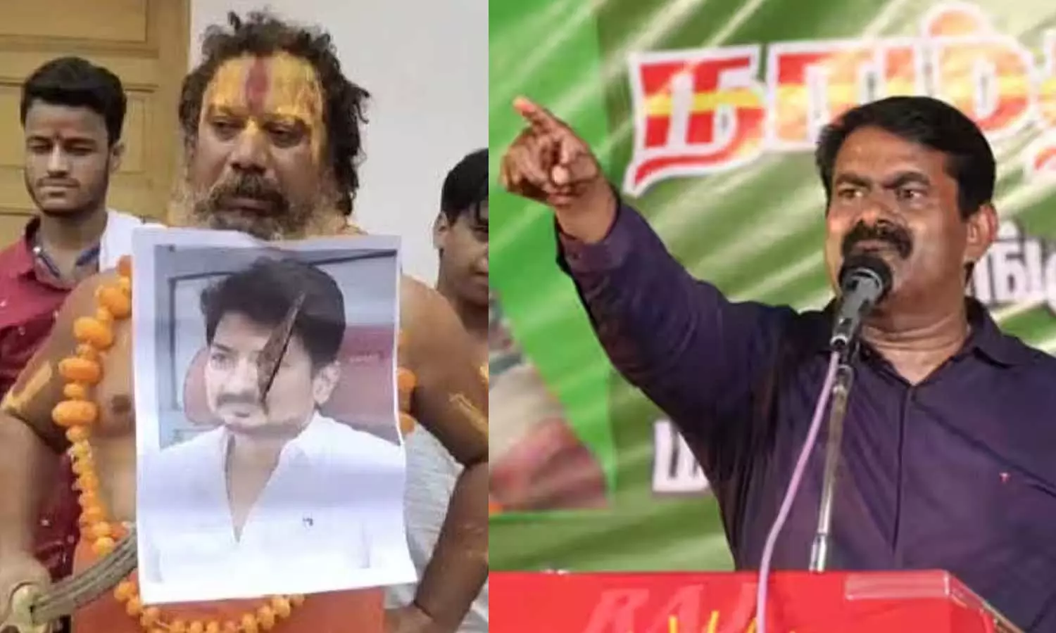 'ഉദയനിധിയുടെ തലയെടുക്കാൻ പറഞ്ഞ സ്വാമിയുടെ തലയെടുത്താൽ 100 കോടി തരാം'; നാം തമിഴർ കക്ഷി നേതാവ് സീമാൻ