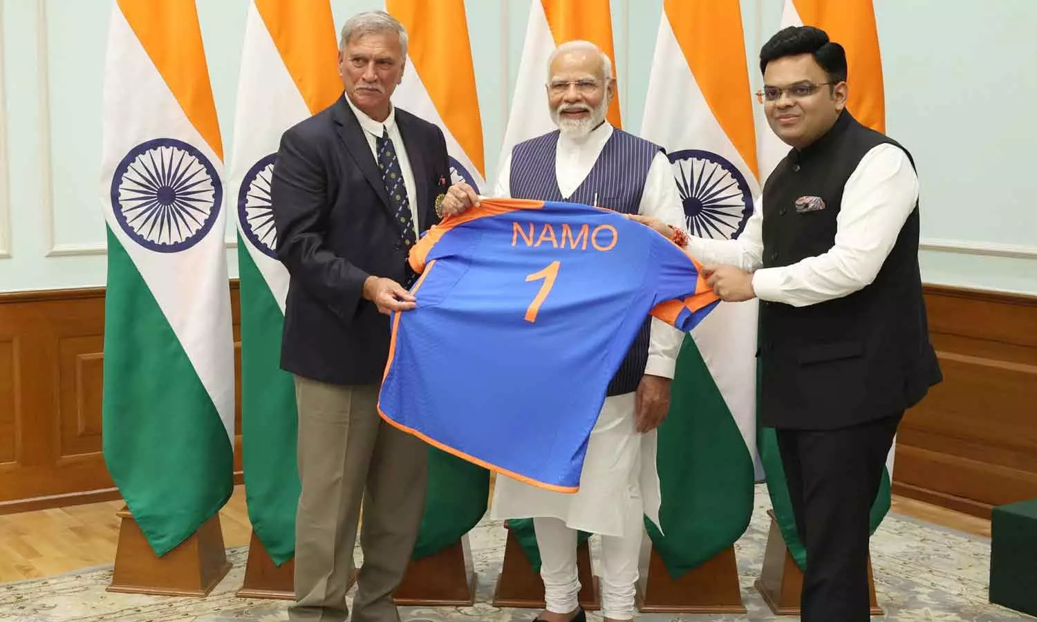 പ്രധാനമന്ത്രിക്ക് 'നമോ' ഇന്ത്യാ ജഴ്സി സമ്മാനിച്ച് ബി.സി.സി.ഐ