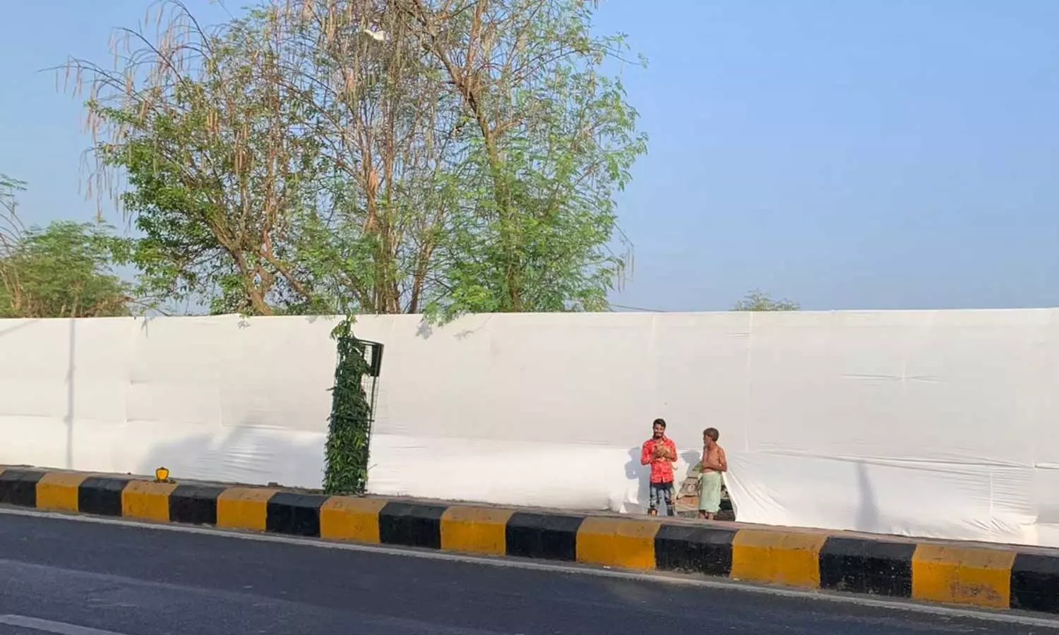 Summary: Ahead of the visit of Boris Johnson, the slum near Sabarmati Ashram in Ahmedabad gets covered with white cloth
