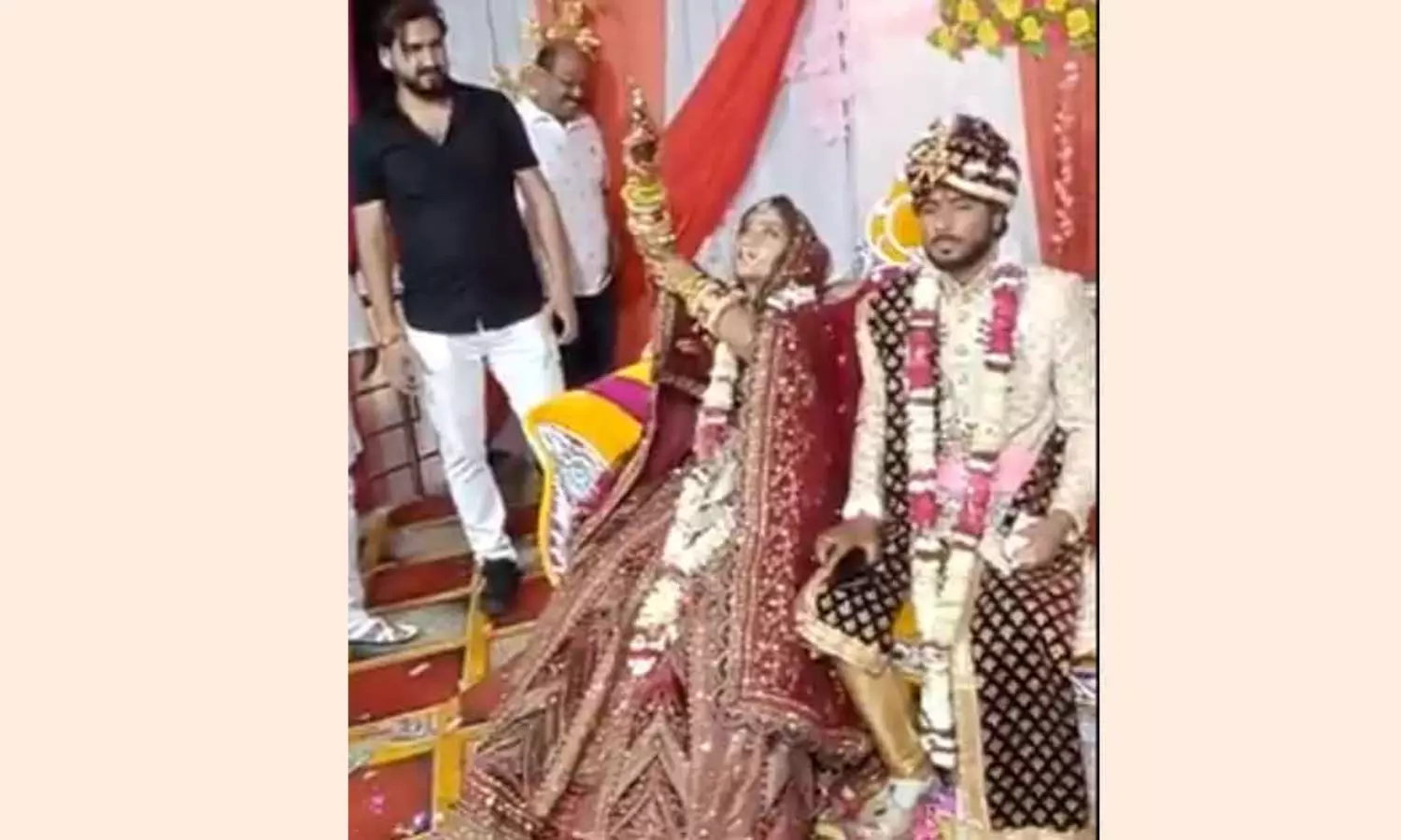 ഉത്തര്പ്രദേശിലെ ഹാഥ്റസില് വെള്ളിയാഴ്ചയാണ് സംഭവം നടന്നത്. വധുവും വരനും പരസ്പരം മാല അണിയിച്ച ശേഷം കൂടെയുണ്ടായിരുന്ന ഒരാള് വധു രാഗിനിക്ക് പിസ്റ്റള് കൈമാറുകയായിരുന്നു. രാഗിനി ഉടന് തന്നെ പിസ്റ്റള് മുകളിലേക്ക് ഉയര്ത്തി പല റൌണ്ട് വെടിയുതിര്ത്തു. വധുവിന്റെ ബന്ധുവാണ് ദൃശ്യം പകര്ത്തി സോഷ്യൽ മീഡിയയിൽ അപ്ലോഡ് ചെയ്തത്.