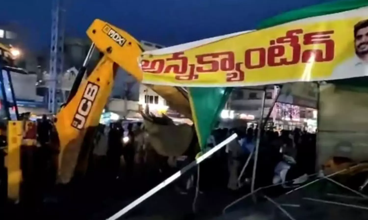 ആന്ധ്രയിലും ബുൾഡോസർ രാഷ്ട്രീയം; ടിഡിപിയുടെ അണ്ണാ ക്യാൻറീൻ തകർത്തു