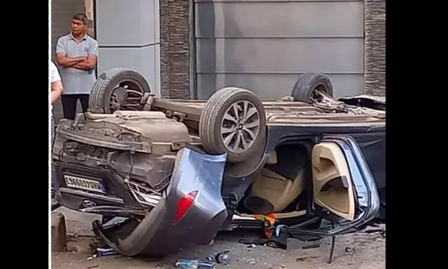ഞായറാഴ്ച സക്കരിയാ റോഡിൽ രാവിലെ 7.30നാണ് സംഭവം. രണ്ടാം നിലയിലെ പാർക്കിങ് ഏരിയയിൽ കാർ പാർക്ക് ചെയ്യുമ്പോഴായിരുന്നു അപകടം. തലകുത്തനെ താഴേയ്ക്ക് പതിച്ച കാർ പൂർണമായും തകർന്നു.