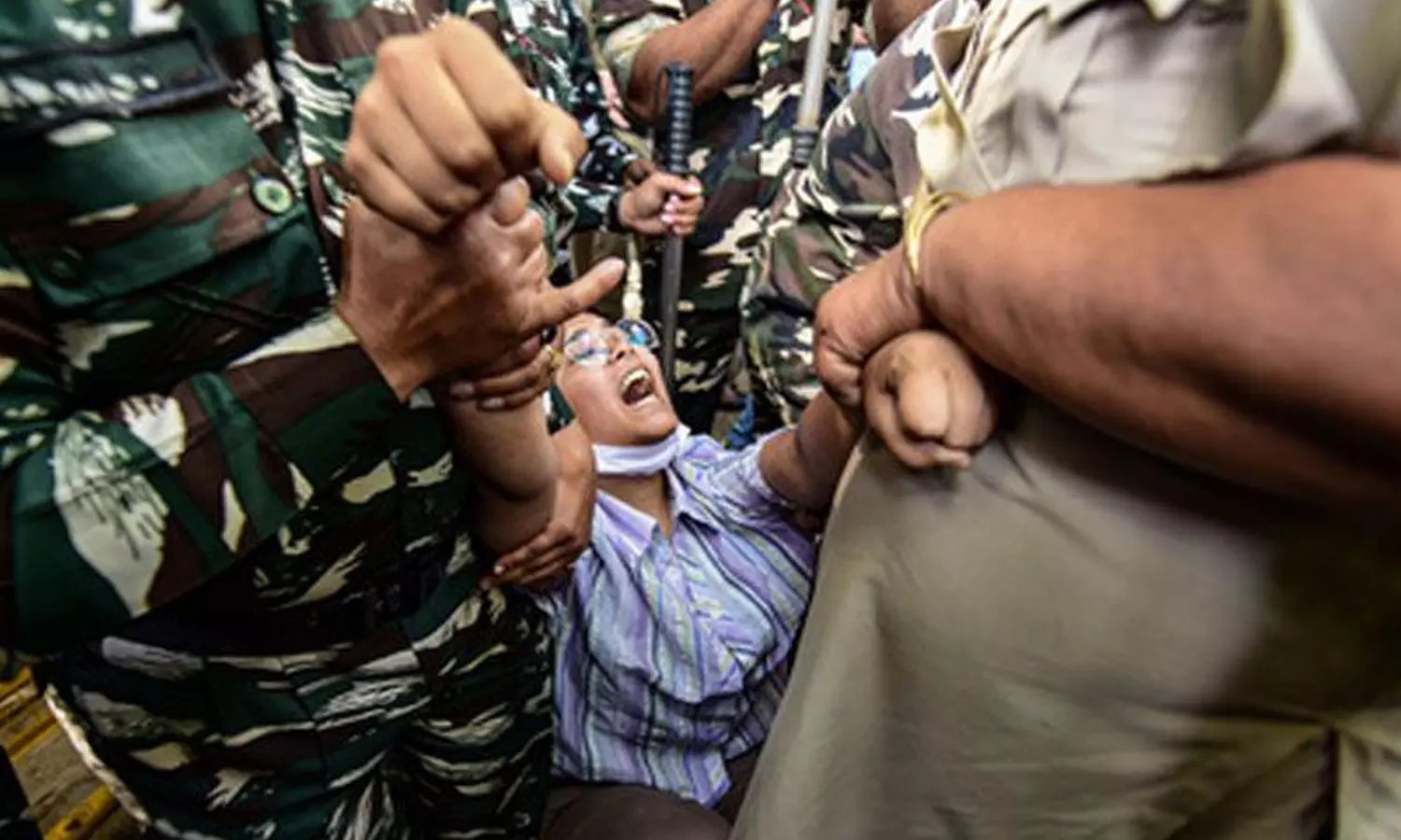 പൊലീസ് ആസ്ഥാനത്തിന് മുന്നിലെത്തിയ വിദ്യാർഥികളെ പൊലീസ് കസ്റ്റഡിയിലെടുത്തു