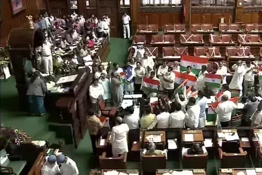 ചെങ്കോട്ടയിൽ കാവി പതാക ഉയർത്താനാകുമോ? മന്ത്രിയുടെ മറുപടിയില് കർണാടക സഭ സമരഭൂമിയാക്കി കോണ്ഗ്രസ് എം.എല്.എമാര്