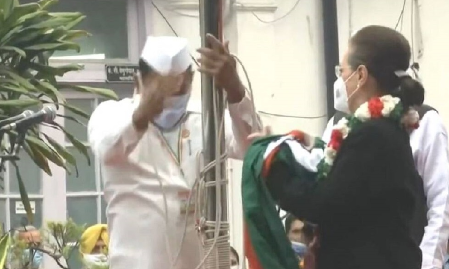 #WATCH | Congress flag falls off while being hoisted by party's interim president Sonia Gandhi on the party's 137th Foundation Day#Delhi pic.twitter.com/A03JkKS5aC