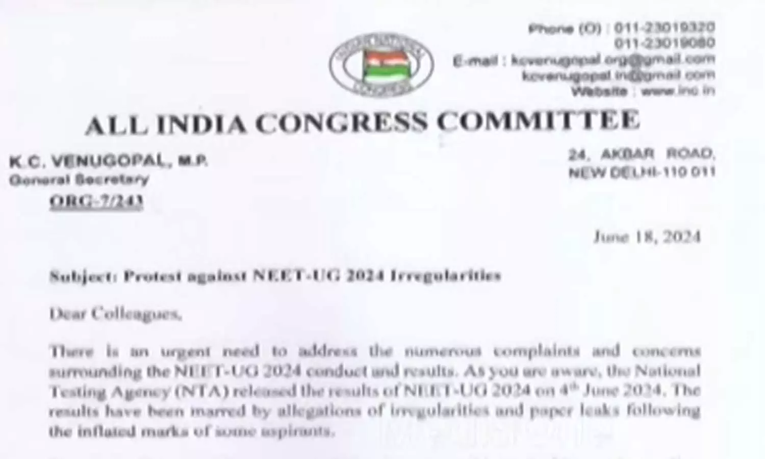 നീറ്റ് പരീക്ഷാ ക്രമക്കേട്; രാജ്യവ്യാപക പ്രതിഷേധത്തിനൊരുങ്ങി കോൺഗ്രസ്