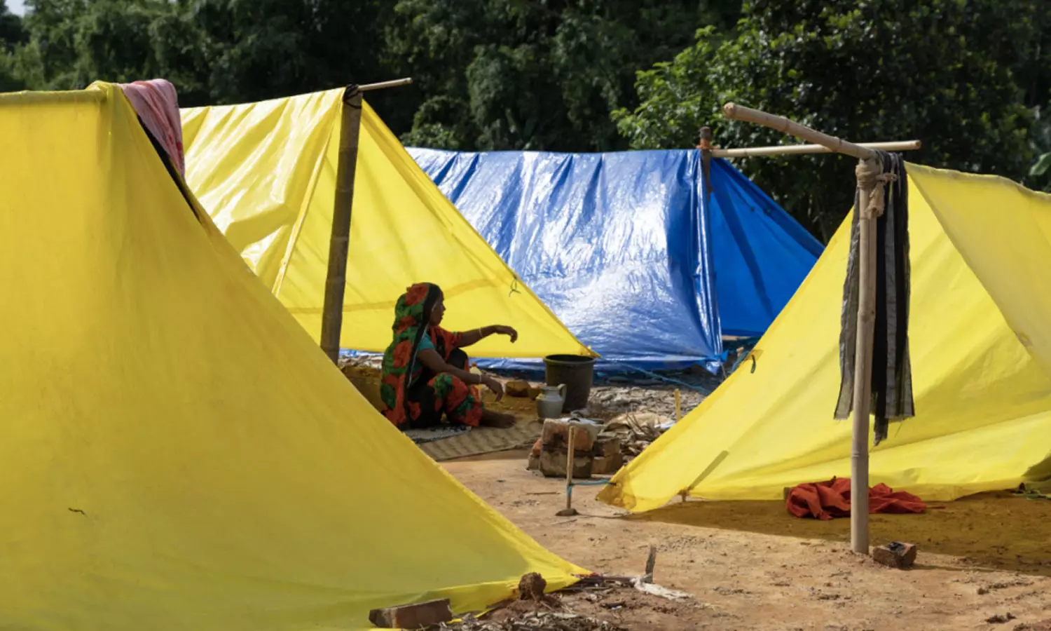 ചൗബക്രയിൽ ടാർപോളിൻ ടെൻ്റുകളിൽ ഒരു സ്ത്രീ പാചകം ചെയ്യുന്നു. ഫോട്ടോ: കാസി ഷരോവർ ഹുസൈൻ, ദി വയർ
