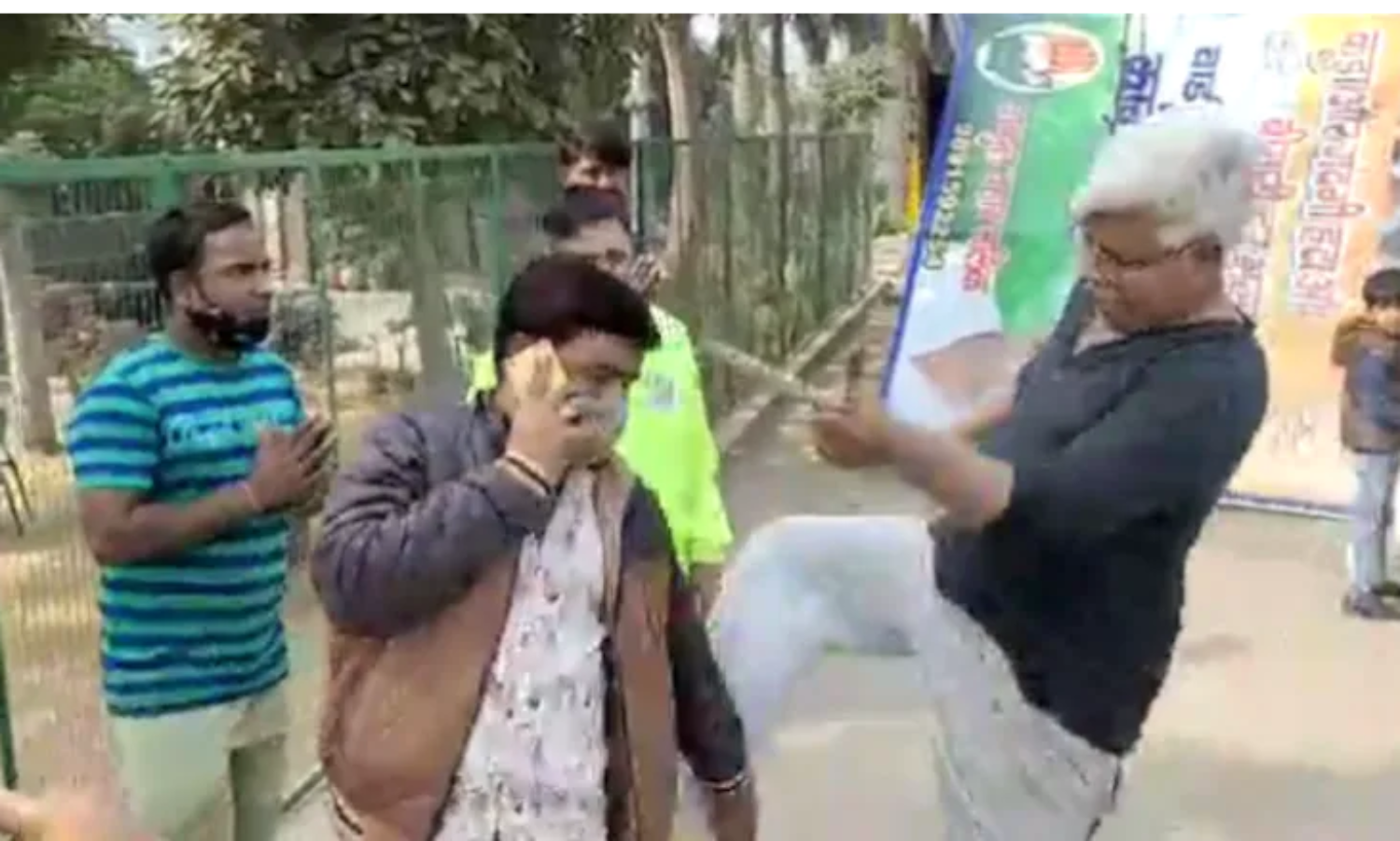 ഹോര്ഡിംഗുകള് നീക്കം ചെയ്തു; മുന്സിപ്പല് ജീവനക്കാര്ക്ക് നേരെ കോണ്ഗ്രസ് നേതാവിന്റെ ചൂരല് പ്രയോഗം