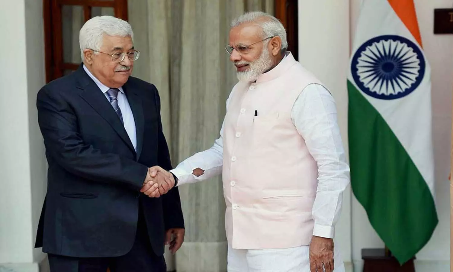നരേന്ദ്ര മോദിയും ഫലസ്തീൻ പ്രസിഡന്റ് മഹ്മൂദ് അബ്ബാസും | Photo: Deccan Herald