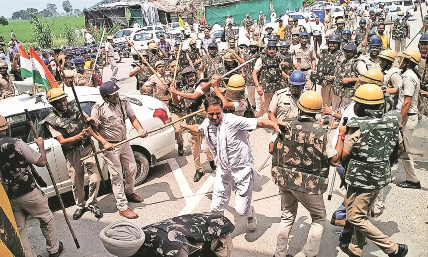 പ്രതിഷേധിക്കുന്ന കർഷകരുടെ തല തല്ലിപ്പൊളിക്കാന് കര്ണാല് സബ് ഡിവിഷണല് മജിസ്ട്രേറ്റ് ആയുഷ് സിന്ഹ ഉന്നത പൊലീസുകാർക്ക് നിര്ദേശം നല്കിയതില് കര്ഷക പ്രതിഷേധം ശക്തമായിരുന്നു. ആയുഷ് സിന്ഹ പൊലീസുകാര്ക്ക് നിര്ദേശം നല്കുന്ന ദൃശ്യങ്ങള് സമൂഹമാധ്യമങ്ങളില് പ്രചരിച്ചതോടെ രൂക്ഷ വിമര്ശനങ്ങളാണ് ഉയര്ന്നത്.