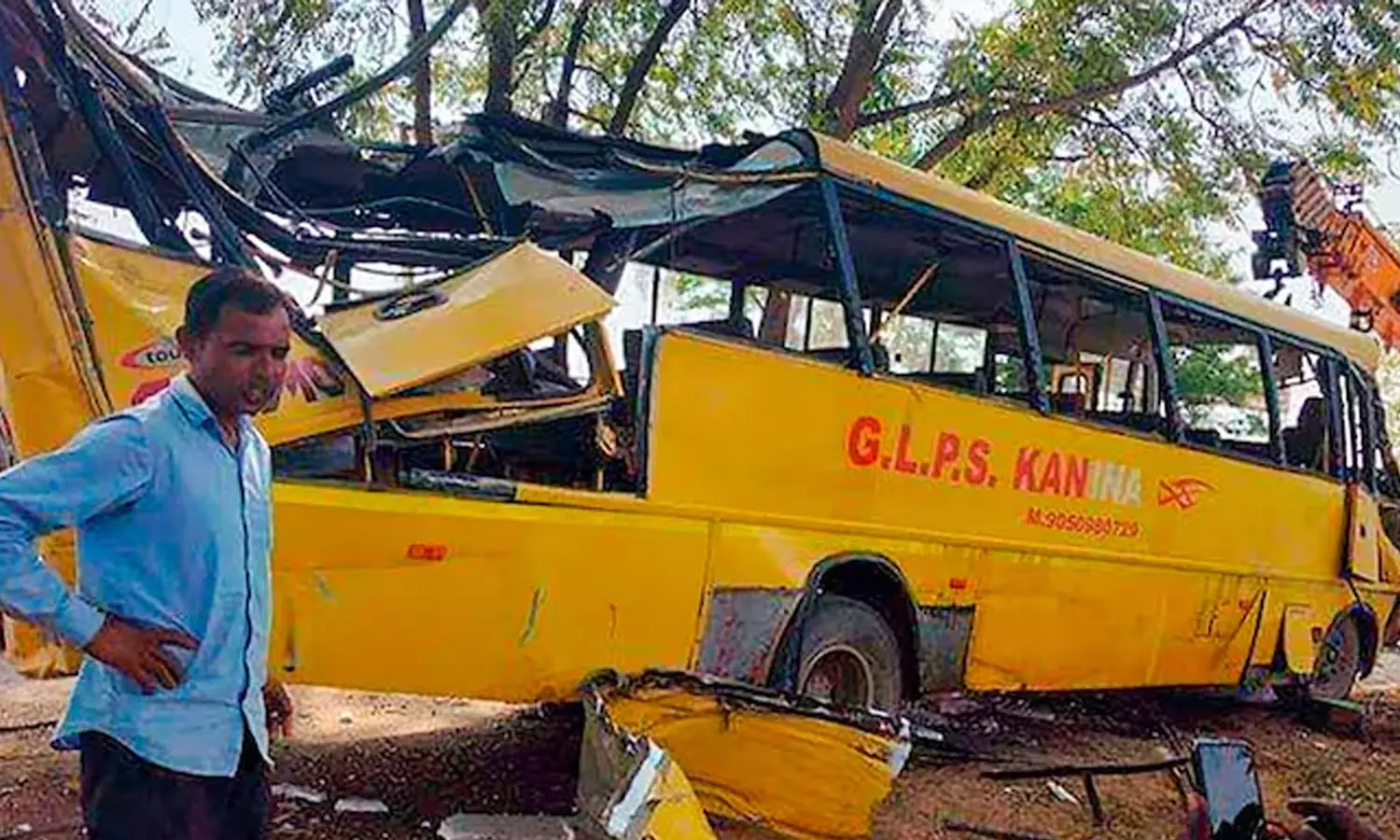 വ്യാഴാഴ്ച രാവിലെ 8.30 ഓടെ കനിനയിലെ ഉൻഹാനി ഗ്രാമത്തിന് സമീപമായിരുന്നു അപകടം. ജി എൽ പബ്ലിക് സ്കൂളിലേക്ക് 40 കുട്ടികളുമായി പോവുകയായിരുന്ന ബസ് മരത്തിലിടിച്ച് മറിയുകയായിരുന്നു. ബസിന്റെ ഡ്രൈവർ ധർമ്മേന്ദറിനെയും അറസ്റ്റ് ചെയ്തിട്ടുണ്ട്. ഇയാൾ മദ്യലഹരിയിലാണെന്നും അമിതവേഗതയിലാണ് വാഹനമോടിച്ചതെന്നും ചില ദൃക്സാക്ഷികൾ പറഞ്ഞതായി പ്രാദേശിക മാധ്യമങ്ങൾ റിപ്പോർട്ട് ചെയ്യുന്നു.