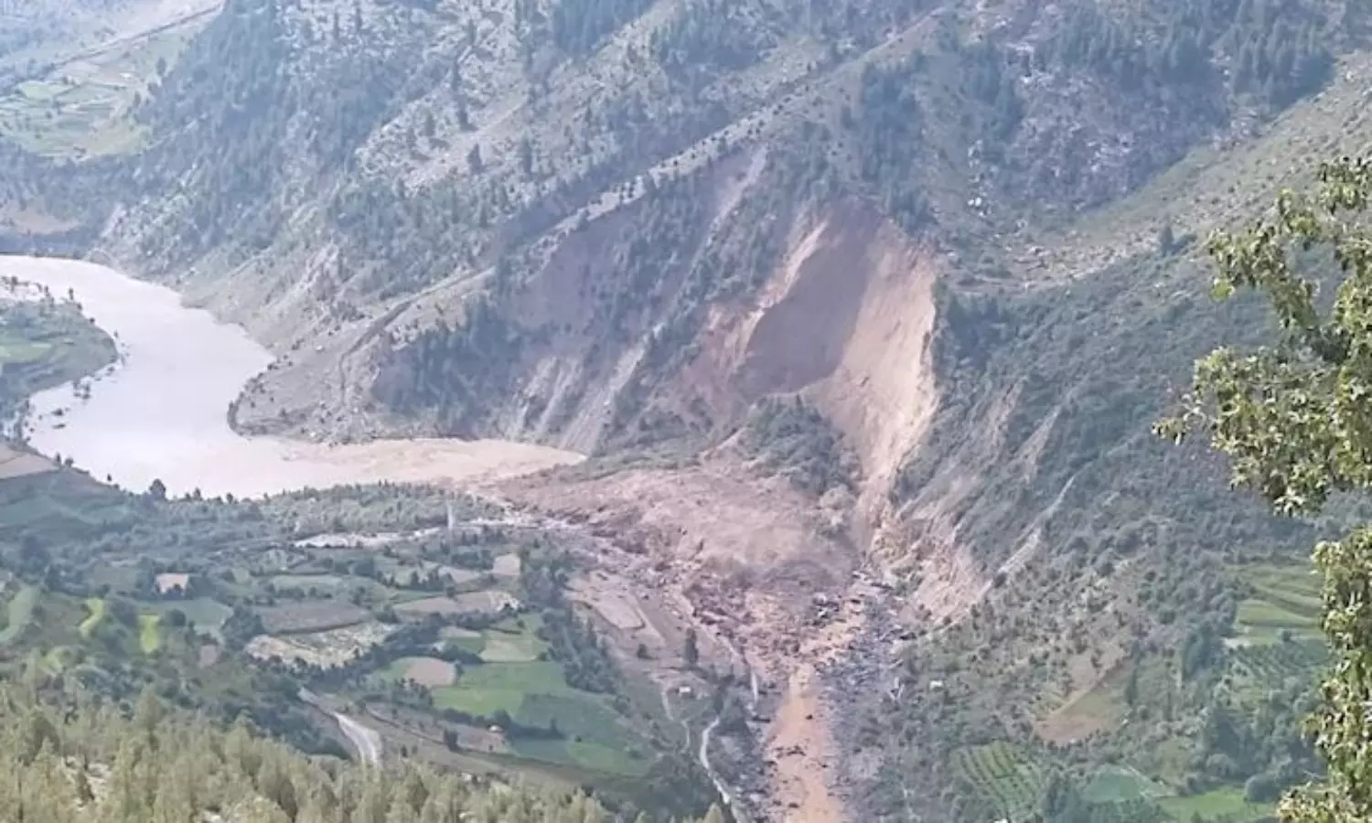 കൂറ്റന് മല ഇടിഞ്ഞ് വീണ് ചന്ദ്രഭാഗ നദിയുടെ ഒഴുക്ക് തടസപ്പെട്ടു.