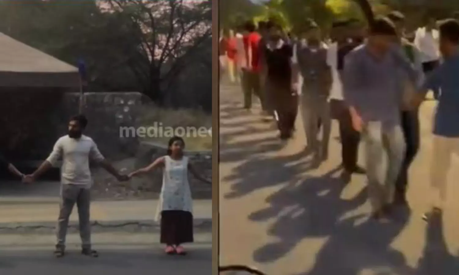 ജെ.എൻ.യുവിൽ വിദ്യാർഥികളുടെ മനുഷ്യ ചങ്ങല; സർവകലാശാല അധികൃതരുടെ നിലപാടിൽ പ്രതിഷേധം ശക്തമാകുന്നു
