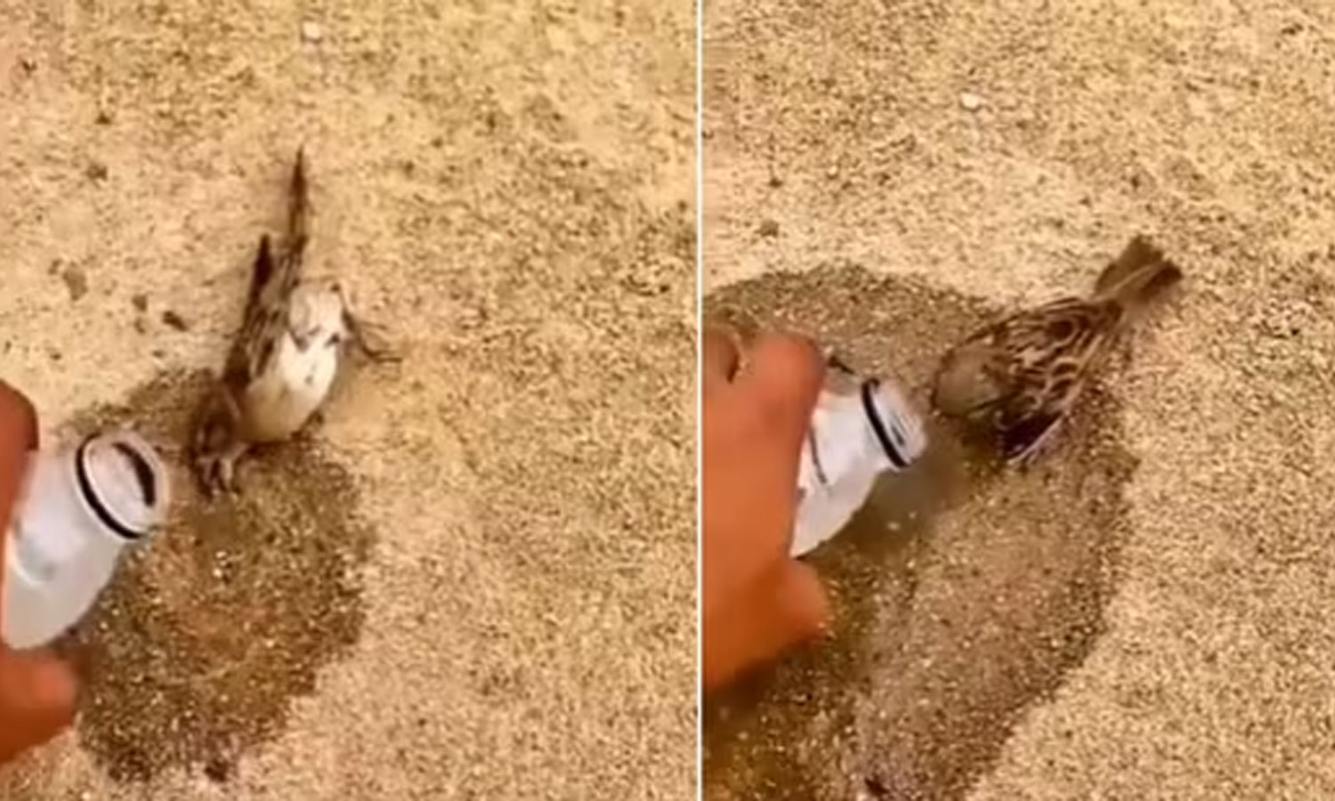 ദാഹിച്ചു വലഞ്ഞ് തളർന്നുവീണുകിടക്കുന്ന പക്ഷിക്ക് വെള്ളം കൊടുക്കുന്ന യുവാവിന്റെ വീഡിയോയാണ് ഇപ്പോൾ പ്രചരിക്കുന്നത്. ചൂട് താങ്ങാനാകാതെ മണ്ണിൽ തളർന്ന് കിടക്കുകയാണ് ഒരു ചെറിയ പക്ഷി. ഈ സമയത്ത് യുവാവ് കുപ്പിയിൽ നിന്ന് വെള്ളം ചെറുതായി ഒഴിച്ചുകൊടുക്കുകയാണ്. വെള്ളം ദേഹത്തേക്ക് വീണപ്പോൾ ആദ്യം ഒന്ന് ഞെട്ടി..പിന്നീട് ചാടിയെഴുന്നേറ്റ് വെള്ളം കുടിച്ച് ദാഹം തീർക്കുന്നു. പക്ഷി വ്യക്തിയുടെ കൈപ്പത്തിയിൽ ഇരിക്കുന്നതോടെയാണ് വീഡിയോ അവസാനിക്കുന്നത്.