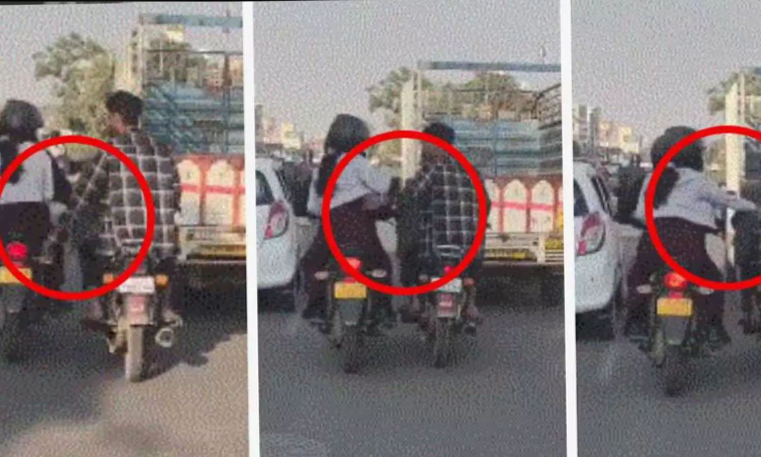ഇസ്‌കോൺ റോഡിന് സമീപമുള്ള ന്യൂ സാങ്കനേർ റോഡിൽ വ്യാഴാഴ്ചയാണ് സംഭവം. ബൈക്കിൽ യാത്ര ചെയ്യുകയായിരുന്നു യുവതി. രണ്ട് യുവാക്കൾ ഒരു മോട്ടോർ സൈക്കിളിൽ പിന്നിൽ നിന്ന് അവരുടെ അടുത്തേക്ക് വന്നു. ഇരുവാഹനങ്ങളും ഓടിക്കൊണ്ടിരിക്കെ, പിന്നിലിരുന്ന യുവാവ് യുവതിയെ പിന്നിൽ നിന്ന് പിടിക്കാൻ ശ്രമിച്ചു. യുവതി ഇയാളെ തല്ലാനായി വിഫലമായൊരു ശ്രമം നടത്തുന്നതും വീഡിയോയിൽ കാണാം. യുവാക്കൾ ഇതിന് പിന്നാലെ ആഹ്ളാദം പ്രകടിപ്പിക്കുന്നതും വീഡിയോയിൽ കാണാം. പിന്നിൽ നിന്ന് വന്ന മറ്റൊരു ബൈക്കിൽ ഘടിപ്പിച്ചിരുന്ന ക്യാമറയിലാണ് അതിക്രമ ദൃശ്യം പതിഞ്ഞത്. എക്സിൽ പങ്കുവെച്ച ഈ ദൃശ്യങ്ങൾ വളരെ വേഗത്തിലാണ് വൈറലായത്. പട്ടാപ്പകൽ പോലും സ്ത്രീകൾക്ക് സുരക്ഷയില്ലെന്ന ആശങ്കയാണ് ഉപയോക്താക്കൾ പങ്കുവെച്ചത്.