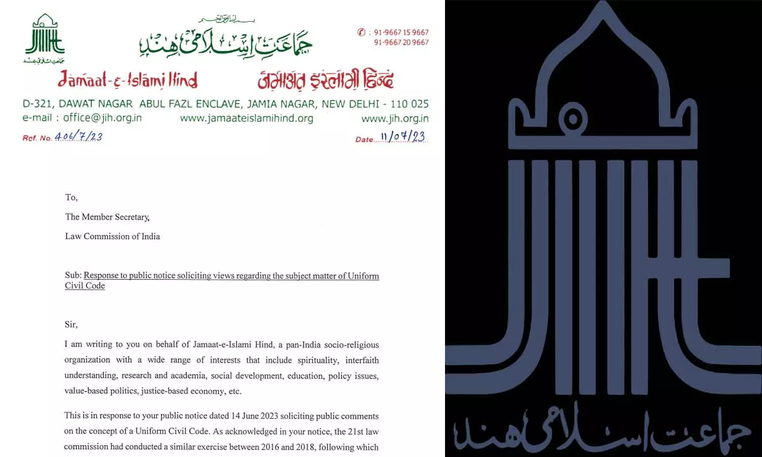 വ്യക്തിനിയമങ്ങളിലുണ്ടാവുന്ന ഏതൊരു പരിഷ്കാരവും ഉള്ളിൽനിന്ന് നയിക്കപ്പെടുമ്പോൾ മാത്രമേ സുസ്ഥിരമാവുകയുള്ളൂ. നിയമനിർമാണത്തിലൂടെ അടിച്ചേൽപ്പിക്കുന്നത് വലിയ പ്രതിന്ധികൾ സൃഷ്ടിക്കുമെന്നും ദേശീയ നിയമ കമ്മീഷന് എഴുതിയ കത്തിൽ ജമാഅത്തെ ഇസ്ലാമി അഖിലേന്ത്യാ വൈസ് പ്രസിഡന്റ് മാലിക് മുഅ്തസിം ഖാൻ പറഞ്ഞു.