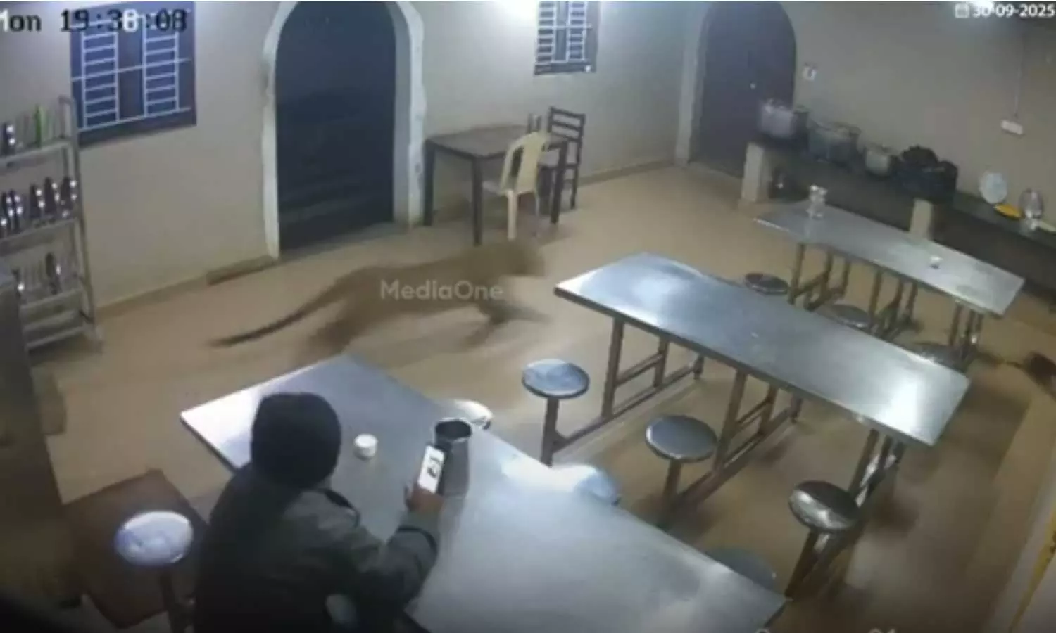 'ചേട്ടാ ചായ പിന്നെക്കുടിക്കാം'; കാന്റീനിൽ പുലി, ചായകുടിക്കാനെത്തിയ യുവാവ് ജീവനുംകൊണ്ടോടി