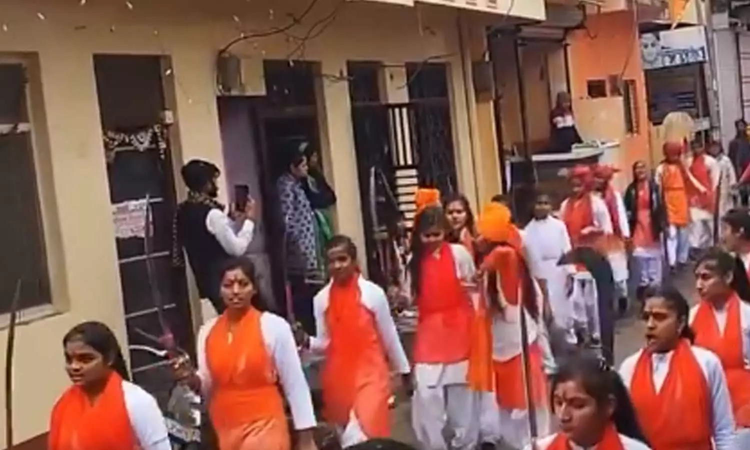 ഹിന്ദുത്വ റാലിയിൽ വാളും വടിയുമായി ജയ് ശ്രീറാം വിളിച്ച് പെൺകുട്ടികൾ; വീഡിയോ