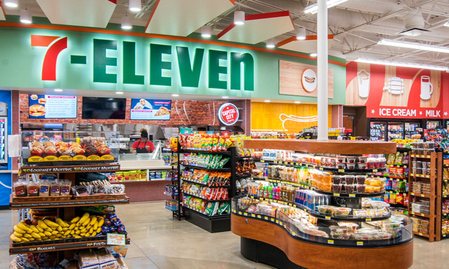 ലോകത്തെ 18ഓളം രാജ്യങ്ങളിൽ സാന്നിധ്യമുള്ള വ്യാപാരശൃംഖലയാണ് ടെക്സാസ് ആസ്ഥാനമായുള്ള 7-ഇലവൻ. ലോകവ്യാപകമായി 77,000 സ്റ്റോറുകളാണ് കമ്പനിക്കുള്ളത്. ഭക്ഷ്യവസ്തുക്കൾക്കു പുറമെ നിത്യോപയോഗത്തിനു വേണ്ട അവശ്യവസ്തുക്കളുമാണ് സ്റ്റോറുകളിൽ വിൽക്കപ്പെടുന്നത്.
