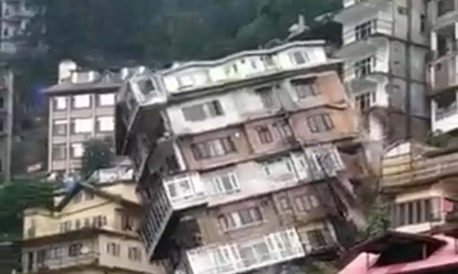 വ്യാഴാഴ്ച ഉച്ചയോടെ ഷിംലയിലാണ് സംഭവം. കനത്തമഴയാണ് ഹിമാചൽ പ്രദേശിൽ അനുഭവപ്പെടുന്നത്. ഇതിനെ തുടർന്നുണ്ടായ മണ്ണിടിച്ചിലിലാണ് കെട്ടിടം തകർന്നുവീണത്. കെട്ടിടം തകർന്നുവീണത് മൂലം തൊട്ടരികിലുള്ള രണ്ടു കെട്ടിടങ്ങൾക്ക് തകരാർ സംഭവിച്ചു.കെട്ടിടം തകർന്നുവീഴുന്ന ദൃശ്യങ്ങൾ വ്യാപകമായാണ് പ്രചരിക്കുന്നത്.