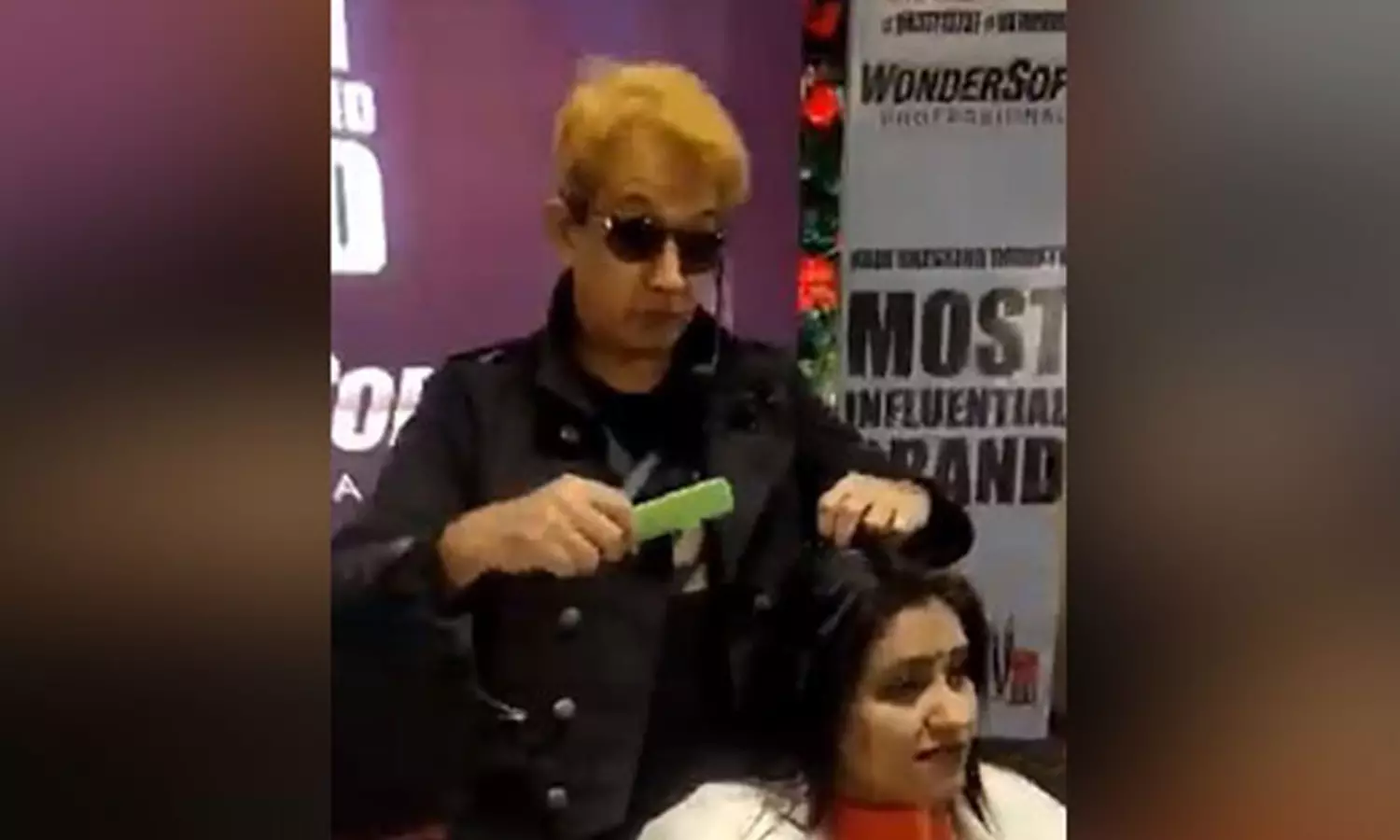 So disgusting! BJP Leader Jawed Habib spits on the hair of a woman while giving her a hair cut. Yuk!