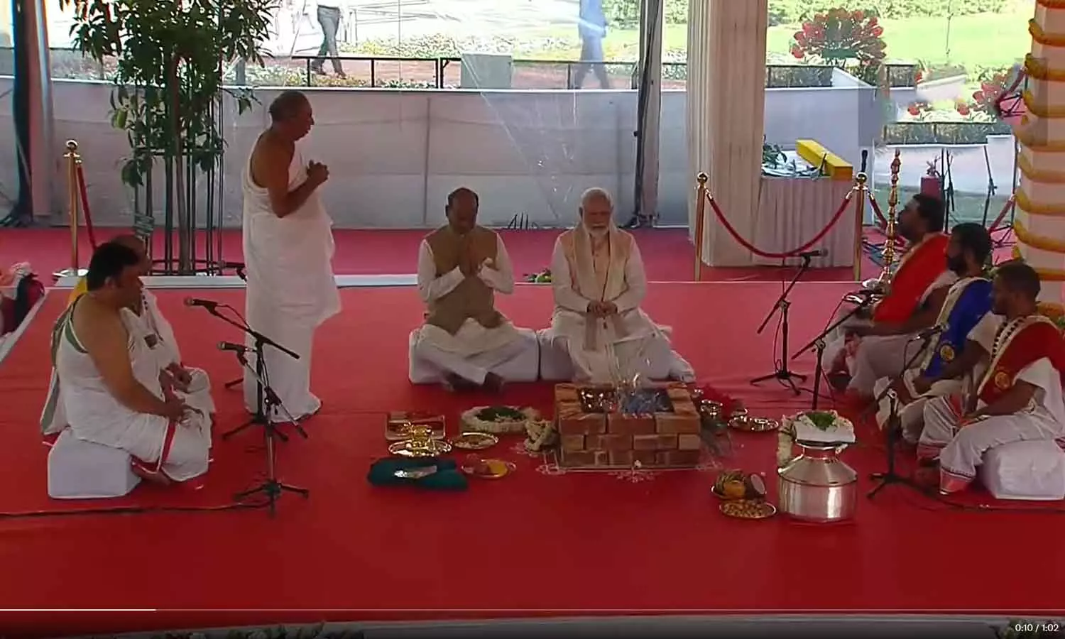 പുതിയ പാർലമെന്റ് മന്ദിരം രാജ്യത്തിന് സമർപ്പിച്ച് പ്രധാനമന്ത്രി; ചെങ്കോൽ സ്ഥാപിച്ചു