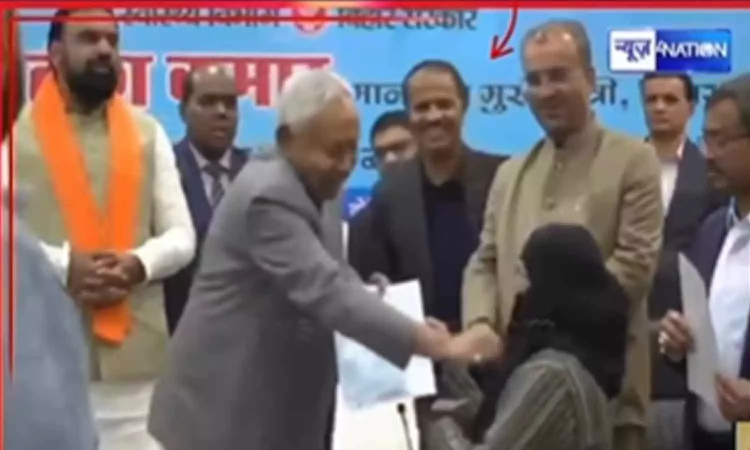 നിയമന ഉത്തരവ് കൈമാറുന്നതിനിടെ വനിത ഡോക്ടറുടെ നിഖാബ് വലിച്ചുമാറ്റി നിതീഷ് കുമാർ