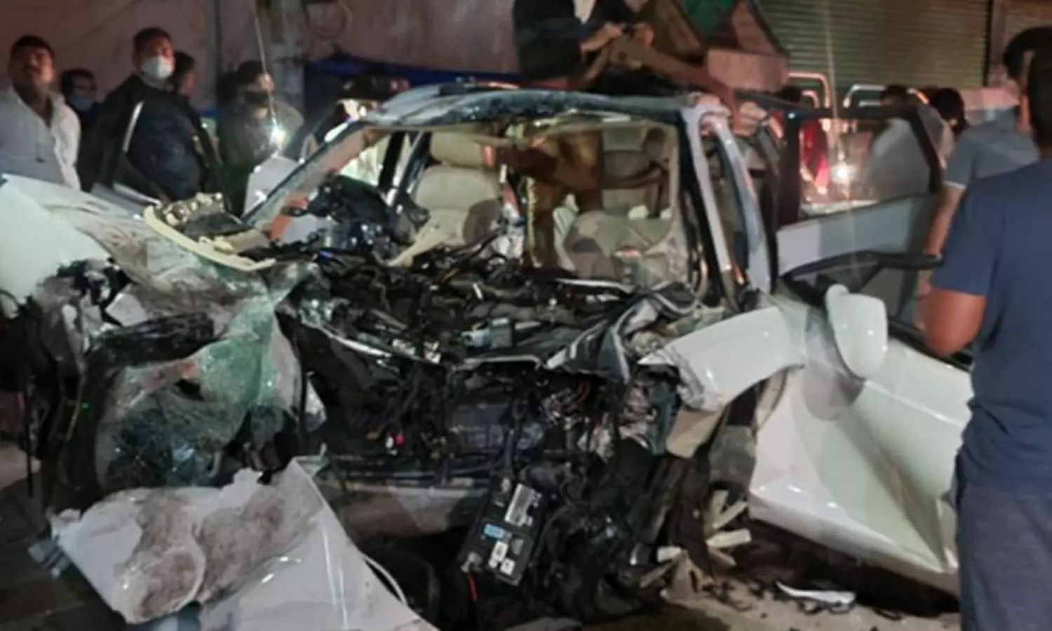നിയന്ത്രണം വിട്ട കാര് വൈദ്യുതി പോസ്റ്റിലിടിച്ച് തകര്ന്നു; എം.എല്.എയുടെ മകനുള്പ്പെടെ ഏഴു പേര് മരിച്ചു- സി.സി.ടി.വി ദൃശ്യങ്ങള് പുറത്ത്