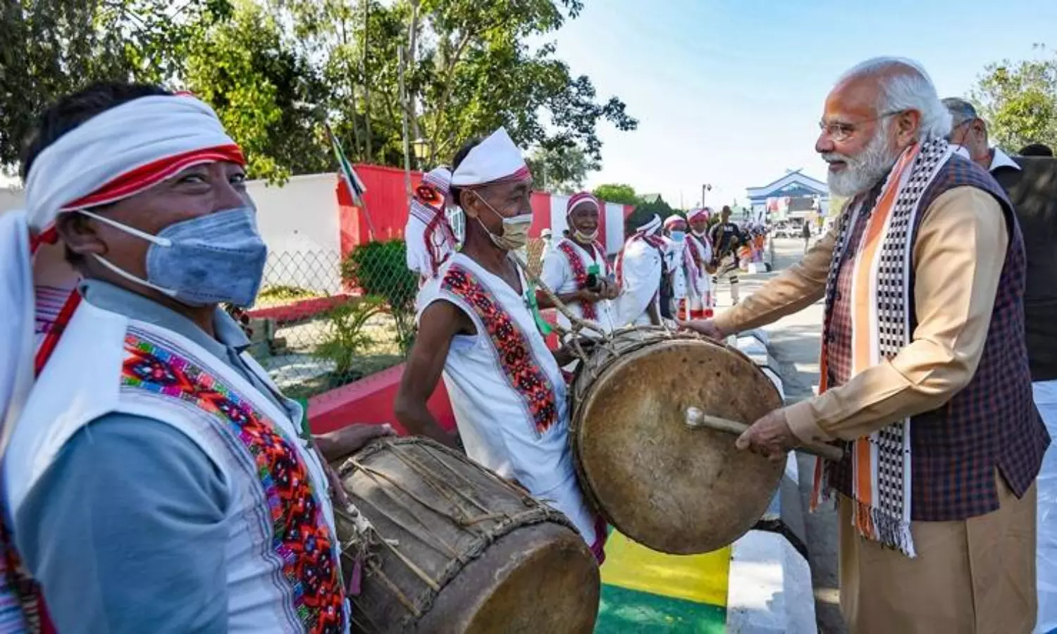 തലസ്ഥാന നഗരിയിൽ തന്നെ വരവേൽക്കാൻ നിന്നിരുന്ന കലാകാരന്മാരുടെ അടുത്തേക്ക് നീങ്ങിയ മോദി അവരുടെ കയ്യിൽ നിന്ന് വാദ്യോപകരണങ്ങൾ വാങ്ങിച്ച് വായിക്കുകയായിരുന്നു.