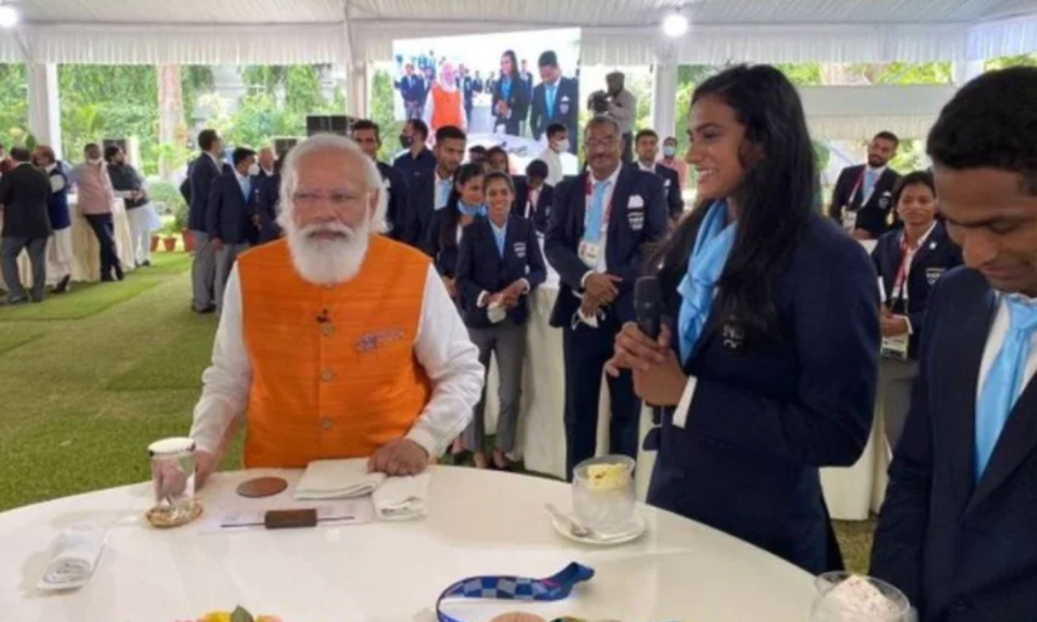 ടോക്യോയിലേക്ക് പോകും മുന്പ് പ്രധാനമന്ത്രി കായികതാരങ്ങളുമായി സംസാരിച്ചിരുന്നു. ജയിച്ചു വരുമ്പോള് നമുക്കൊന്നിച്ച് ഐസ്ക്രീം കഴിക്കാം എന്നാണ് അന്ന് മോദി പി വി സിന്ധുവിനോട് പറഞ്ഞത്. 2016ലെ റിയോ ഒളിംപിക്സിൽ വെള്ളി മെഡൽ നേടിയ ശേഷമുള്ള അഭിമുഖത്തിൽ ഐസ്ക്രീം കഴിക്കുന്നത് പോലും കോച്ച് ഗോപീചന്ദ് വിലക്കിയിരുന്നതായി സിന്ധു പറഞ്ഞിരുന്നു. ഇത് ഓർത്തെടുത്തായിരുന്നു മോദിയുടെ വാക്കുകൾ. ഒളിംപിക്സ് അടുത്തതിനാല് ഡയറ്റ് നോക്കുകയാണെന്നും ഐസ്ക്രീം കഴിക്കുന്നില്ലെന്നും സിന്ധു മറുപടി നൽകി. ടോക്യോയിൽ വിജയം ആവർത്തിക്കട്ടെയെന്ന് പ്രധാനമന്ത്രി ആശംസിച്ചു- 'കഠിനാധ്വാനം ചെയ്യൂ. എനിക്ക് നിങ്ങളിൽ വിശ്വാസമുണ്ട്. ഈ സമയത്തും നിങ്ങൾ വിജയിയാകും. വിജയിച്ചു വന്ന ശേഷം നമുക്ക് ഐസ്ക്രീം കഴിക്കാം'- എന്നാണ് അന്ന് പ്രധാനമന്ത്രി പറഞ്ഞത്.