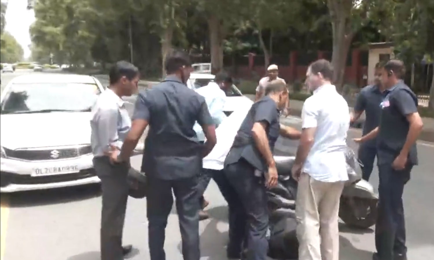 റോഡിൽ വീണ് സ്കൂട്ടർ യാത്രികൻ; കാർ നിർത്തി അന്വേഷിച്ച് രാഹുൽ ഗാന്ധി