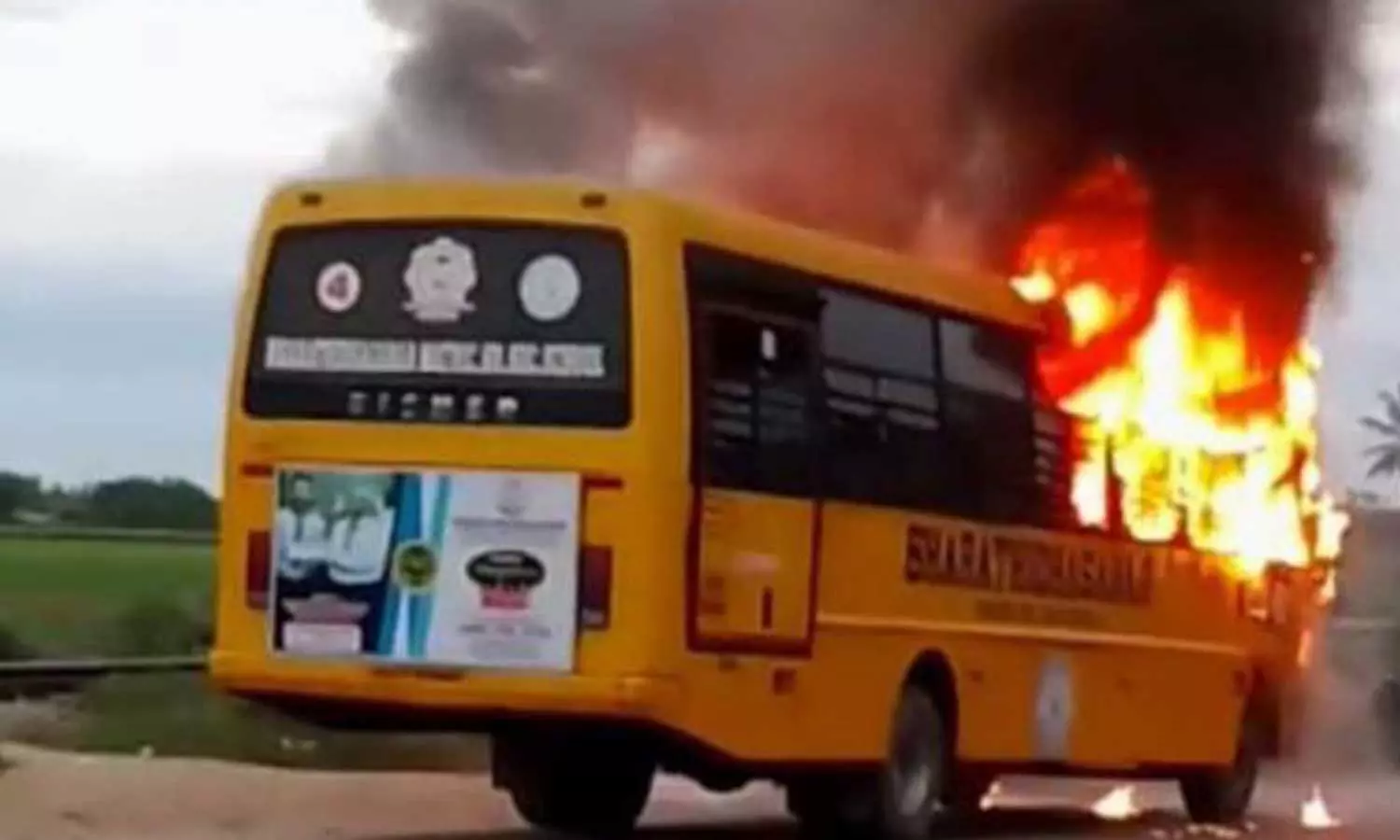 തമിഴ്നാട്ടിൽ ഓടിക്കൊണ്ടിരിക്കുന്ന സ്കൂൾ ബസിന് തീപിടിച്ചു; വിദ്യാർഥികൾ അത്ഭുതകരമായി രക്ഷപ്പെട്ടു