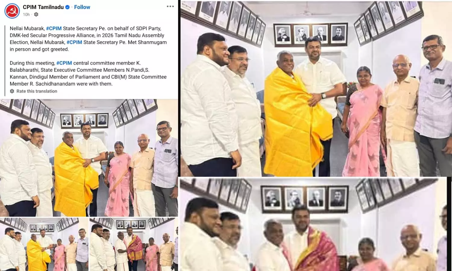 സിപിഎം തമിഴ്നാട് സെക്രട്ടറി ഷൺമുഖത്തെ സന്ദർശിച്ച് എസ്ഡിപിഐ പ്രസിഡൻ്റ്; പങ്കുവെച്ച ചിത്രം നീക്കി സിപിഎം ഒഫീഷ്യൽ പേജ്
