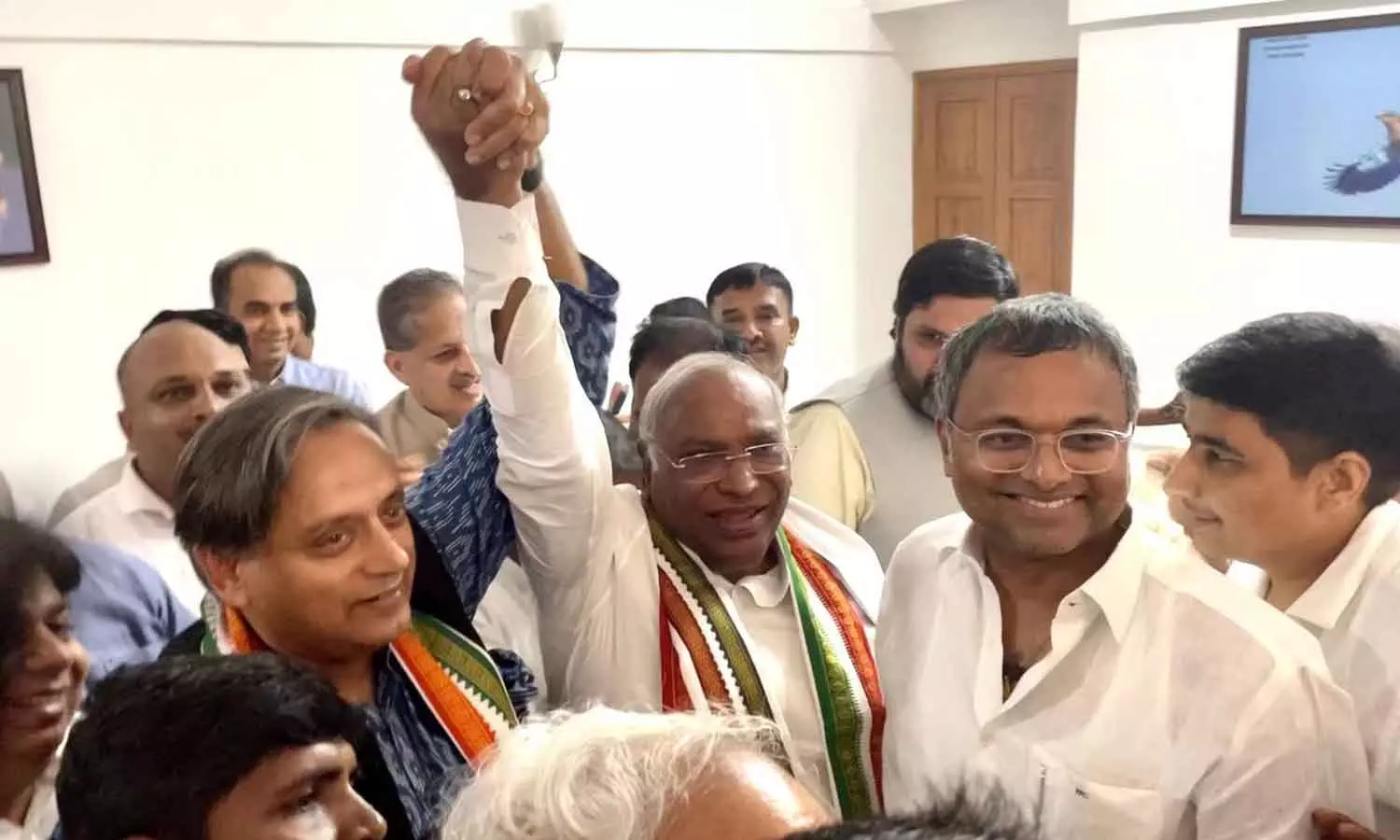 ഖാർഗെയുടെ വസതിയിലെത്തി അഭിനന്ദനമറിയിച്ച് ശശി തരൂർ