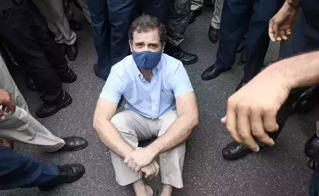 റോഡിൽ കുത്തിയിരുന്ന് രാഹുൽ; രാഷ്ട്രപതി ഭവൻ മാർച്ചിൽ നാടകീയ രംഗങ്ങൾ
