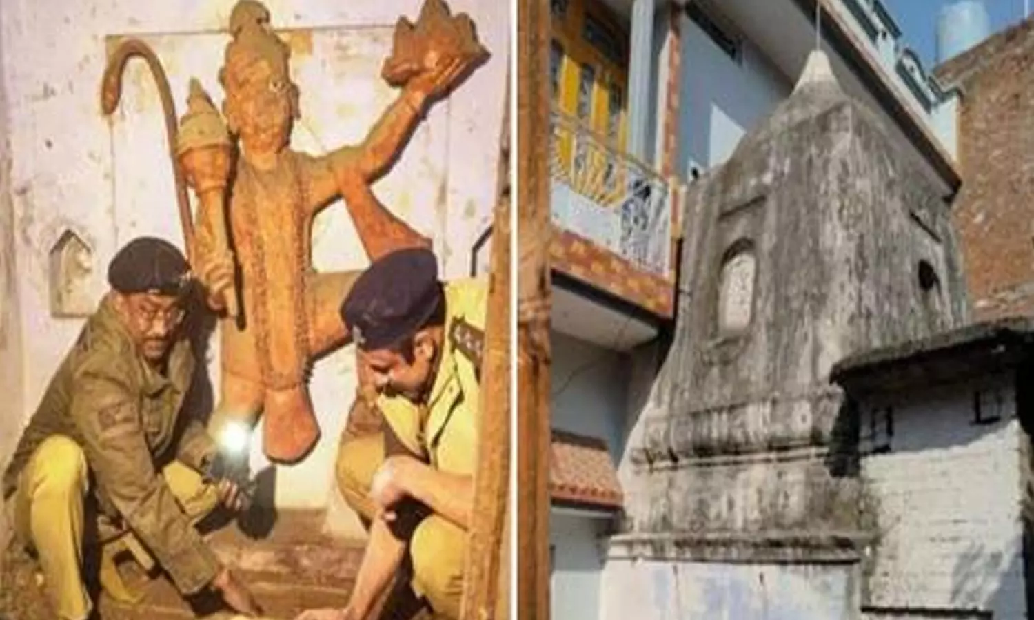 അനധികൃത വൈദ്യുത കണക്ഷൻ പരിശോധിക്കുന്നതിനിടെ ക്ഷേത്രം കണ്ടെത്തിയെന്നാണ് അധികൃതരുടെ വാദം. ജില്ലാ മജിസ്ട്രേറ്റ് രാജേന്ദർ പെൻസിയയുടെ നേതൃത്വത്തിലായിരുന്നു പരിശോധന. ‘ക്ഷേത്രത്തിൽനിന്ന് ശിവലിംഗവും ഹനുമാൻ പ്രതിമയും കണ്ടെടുത്തു. ക്ഷേത്ര കവാടങ്ങൾ തുറക്കുകയും വൃത്തിയാക്കുകയും ചെയ്തു. തൊട്ടടുത്തുള്ള കിണറും വൃത്തിയാക്കി. 500 വർഷത്തിലേറെ പഴക്കമുള്ള ക്ഷേത്രമാണിത്. ക്ഷേത്രത്തിനു സമീപത്തെ കൈയേറ്റങ്ങൾ പരിശോധിച്ചു വരുകയാണ്. വേണ്ട നടപടി സ്വീകരിക്കും’ -എന്നായിരുന്നു ജില്ല മജിസ്ട്രേറ്റ് പറഞ്ഞിരുന്നത്.
