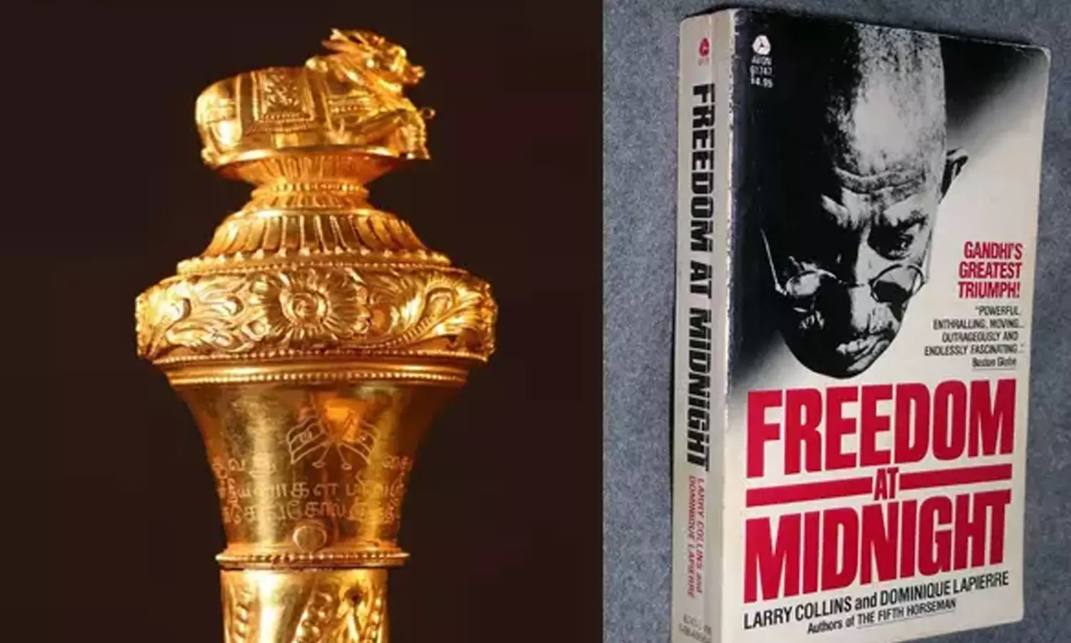 ഇന്ത്യൻ സ്വാതന്ത്ര്യത്തെക്കുറിച്ച് ഡൊമിനിക് ലാംപിയർ എന്ന ഫ്രഞ്ചുകാരനും ലാറി കോളിൻസ് എന്ന അമേരിക്കക്കാരനും ചേർന്നെഴുതിയ ഫ്രീഡം അറ്റ് മിഡ്നൈറ്റ് (സ്വാതന്ത്ര്യം അർദ്ധരാത്രിയിൽ) എന്ന പുസ്തകത്തിൽ ഈ ചെങ്കോലിനെ കുറിച്ച് വിവരിക്കുന്നുണ്ട്. പുസ്തകത്തിലെ 'ലോകം ഉറങ്ങിയപ്പോൾ' എന്ന അധ്യായത്തിലാണ് അധികാര കൈമാറ്റ ചടങ്ങിനെകുറിച്ചുള്ള വിവരണവും ചെങ്കോലിനെ സംബന്ധിച്ച പരാമർശവുമുള്ളത്