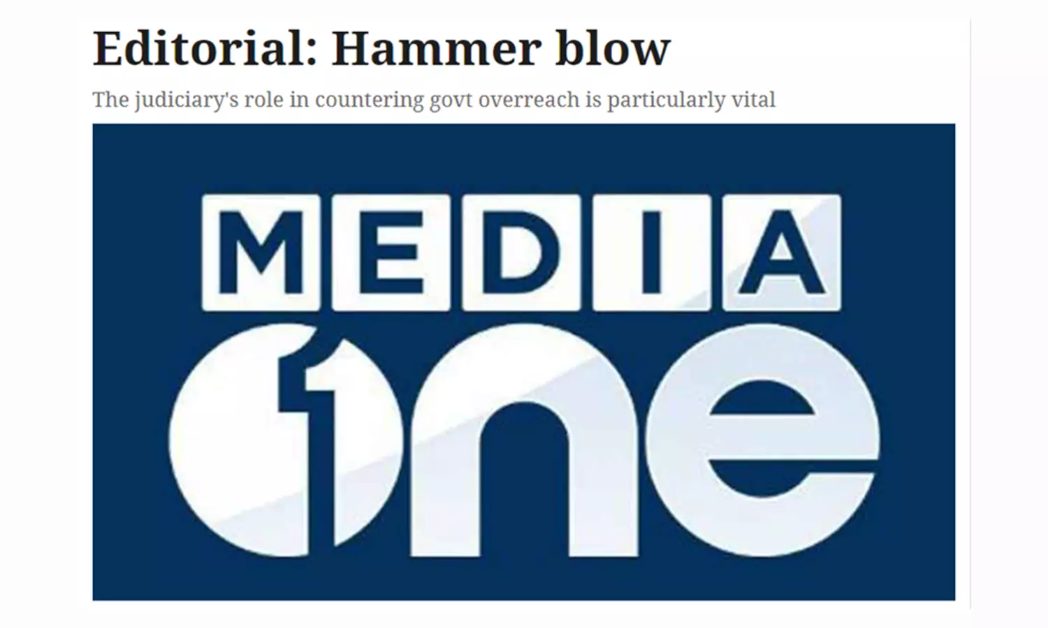ദേശസുരക്ഷയെന്ന കാരണം പറഞ്ഞ് ലൈസൻസ് റദ്ദാക്കാനുള്ള കേന്ദ്ര സർക്കാരിന്റെ തീരുമാനം ചോദ്യംചെയ്ത് മീഡിയവൺ ചാനല് സമര്പ്പിച്ച ഹരജി കഴിഞ്ഞ ചൊവ്വാഴ്ച കേരള ഹൈക്കോടതി തള്ളിയിരുന്നു. ഓരോ കേസിന്റെയും മെറിറ്റ് പരിശോധിച്ച് വിധിയെഴുതുക എന്നത് ഹൈക്കോടതിയുടെ കടമയാണ്. എന്നിരുന്നാലും ഈ കേസിൽ കോടതി തീരുമാനമെടുത്ത രീതി, എക്സിക്യൂട്ടീവും (കാര്യനിര്വഹണം) ജുഡീഷ്യറിയും (നീതിന്യായം) തമ്മിലുള്ള ബന്ധത്തെക്കുറിച്ചും ജനാധിപത്യത്തിൽ മാധ്യമങ്ങളുടെ പങ്കിനെക്കുറിച്ചും ആശങ്കാജനകമായ ചോദ്യങ്ങൾ ഉയർത്തുന്നു.