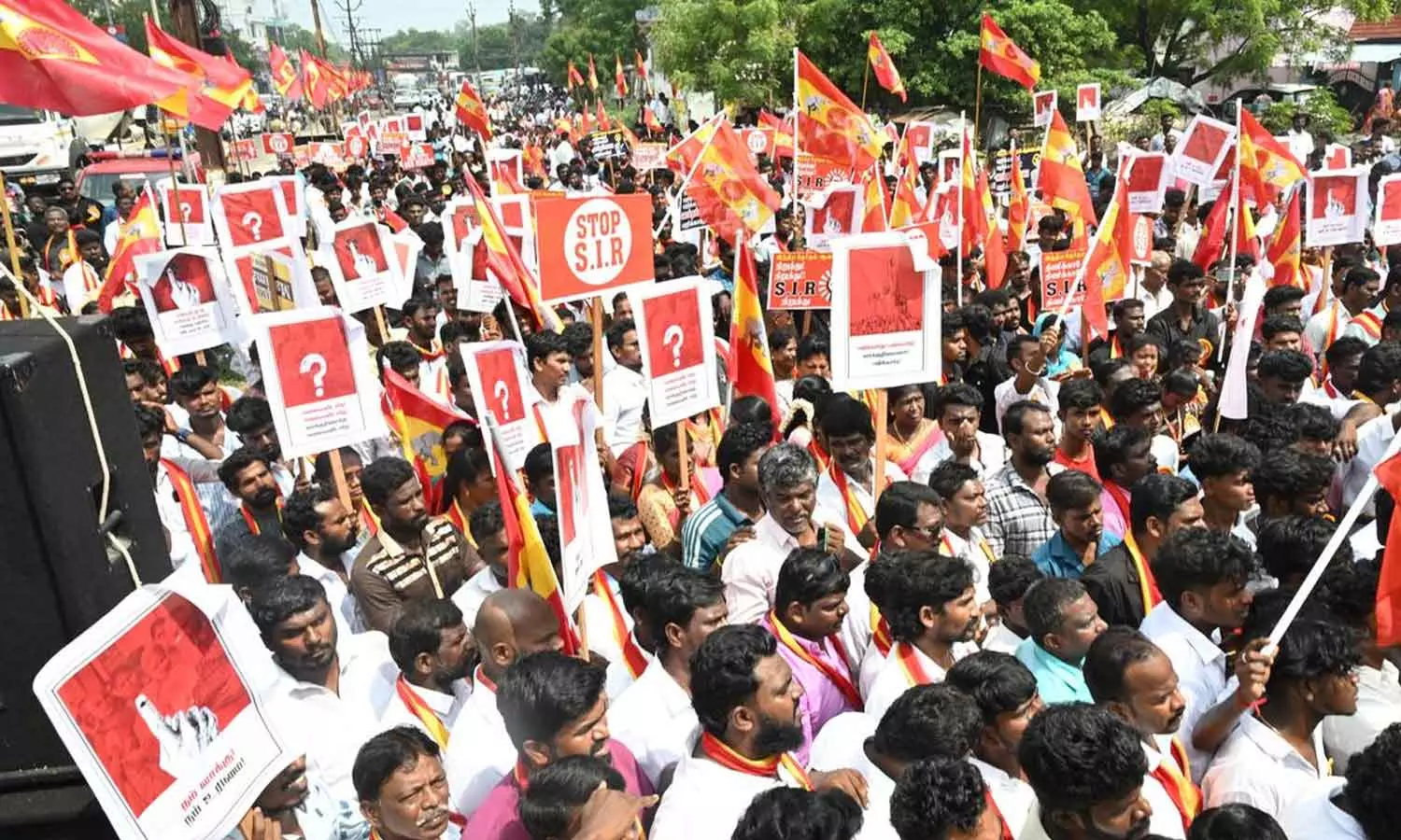 എസ്‌ഐആർ നിർത്തണമെന്നാവശ്യപ്പെട്ട് ഡിഎംകെ മുന്നണിയുടെ ആഭിമുഖ്യത്തിൽ നവംബർ 11-ന് സംസ്ഥാനവ്യാപകമായി പ്രതിഷേധപരിപാടി സംഘടിപ്പിച്ചിരുന്നു. ഡിഎംകെയുടെയും കോൺഗ്രസ്, സിപിഎം, സിപിഐ, വിസികെ, എംഡിഎംകെ തുടങ്ങിയ സഖ്യകക്ഷികളുടെയും നേതാക്കളും പ്രവർത്തകരും പരിപാടിയിൽ പങ്കെടുത്തിരുന്നു.