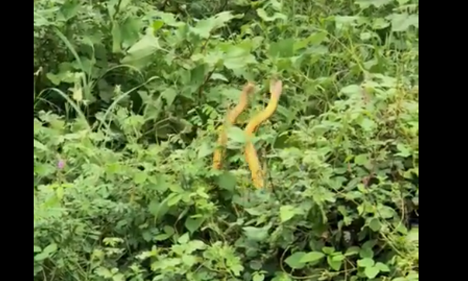 സോഹോ സി.ഇ.ഒ ശ്രീധര്‍ വെമ്പുവാണ് ട്വിറ്ററില്‍ വീഡിയോ പങ്കുവച്ചിരിക്കുന്നത്. തമിഴ്നാട്ടിലെ തെങ്കാശിയില്‍ നിന്നാണ് വീഡിയോ പകര്‍ത്തിയിരിക്കുന്നത്. മഞ്ഞ നിറമുള്ള പാമ്പുകള്‍ മഴയത്ത് നൃത്തം ചെയ്യുന്നത് വീഡിയോയില്‍ കാണാം. വളരെ ആസ്വദിച്ചാണ് ഇവയുടെ നൃത്തം. പല പല സ്റ്റെപ്പുകള്‍ മാറിമാറി പരീക്ഷിക്കുന്നുമുണ്ട്. '' ഇന്ന് തെങ്കാശിയില്‍ കനത്ത മഴയ്ക്ക് ശേഷമുണ്ടായ പാമ്പുകളുടെ മനോഹരമായ നൃത്തം. നടക്കാന്‍ പോകുമ്പോള്‍ ഈ വീഡിയോ പകര്‍ത്തിയ @AksUnik നന്ദി'' എന്ന അടിക്കുറിപ്പോടെയാണ് ശ്രീധര്‍ വീഡിയോ ഷെയര്‍ ചെയ്തിരിക്കുന്നത്.